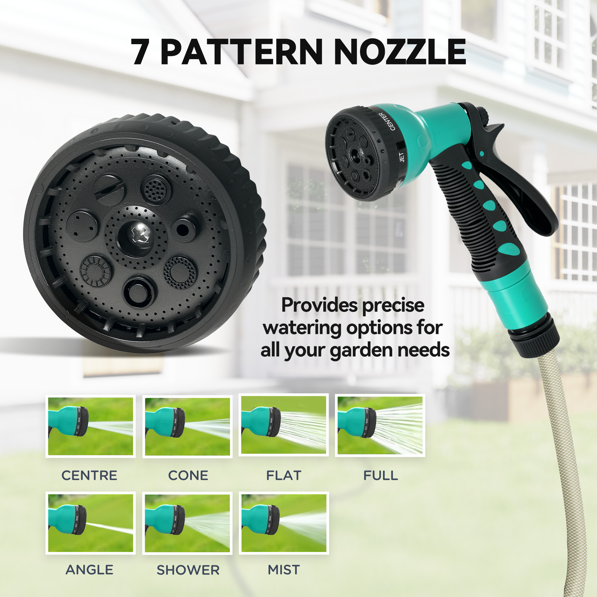 Discover the ease of watering with the Water Hose Reel. This retractable hose reel boasts a 30-metre hose with a nifty 180° swivel feature for effortless coverage. UV-resistant and equipped with an auto-rewind system, this wall mounted hose reel simplifies gardening. Enjoy tailored watering with seven unique patterns, ensuring every corner of your garden flourishes.
