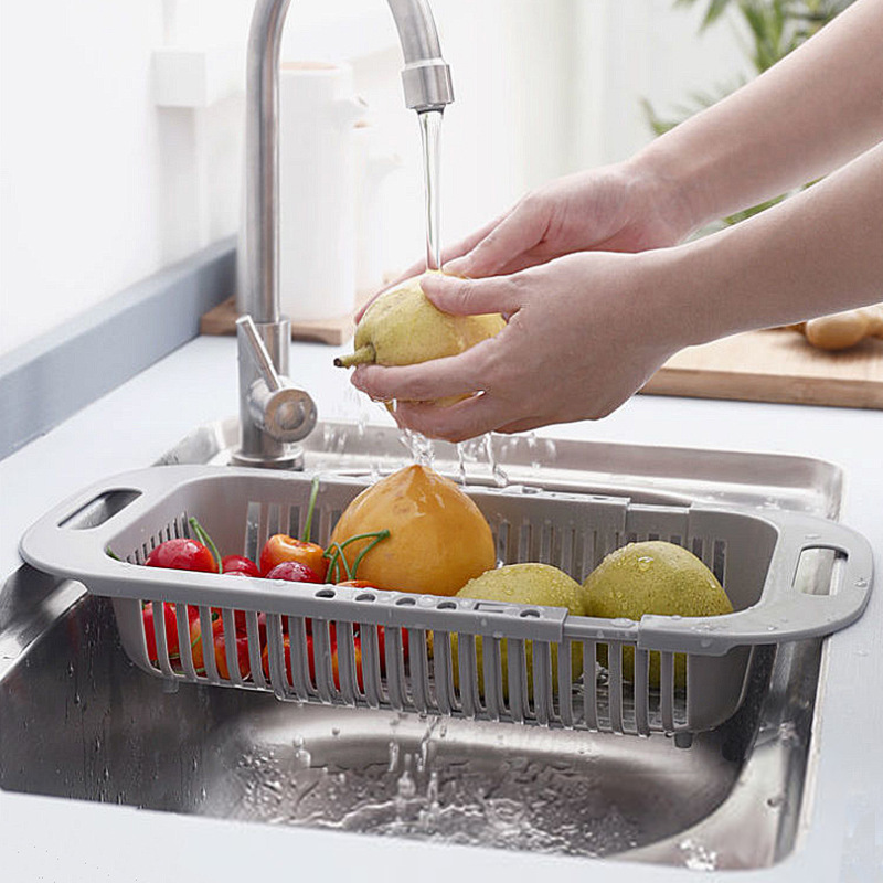 Telescopic sink drain rack shelf kitchen plastic bowl and chopstick holder household vegetable and fruit drain basket