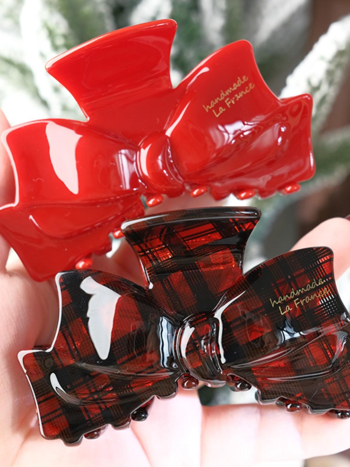 Color classification: Red large bow, Black and Red checkered large bow