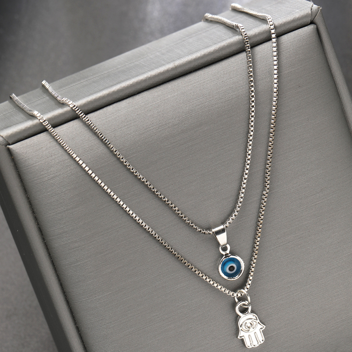 Retro Affordable Luxury Sets Of Simple Devil Eye Palm Necklace Suit