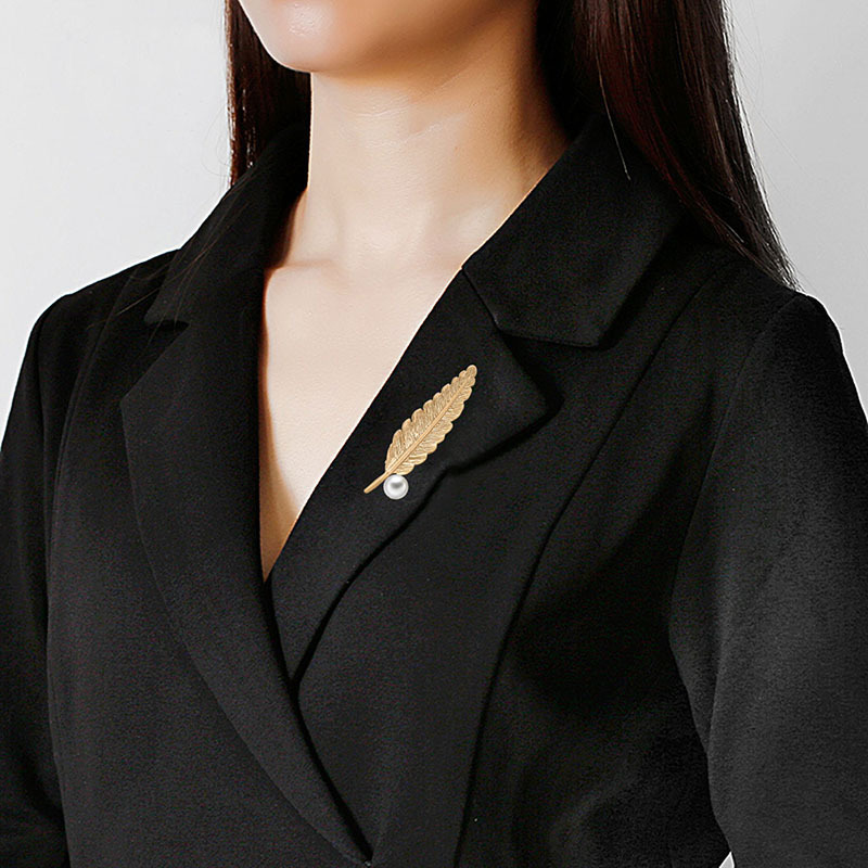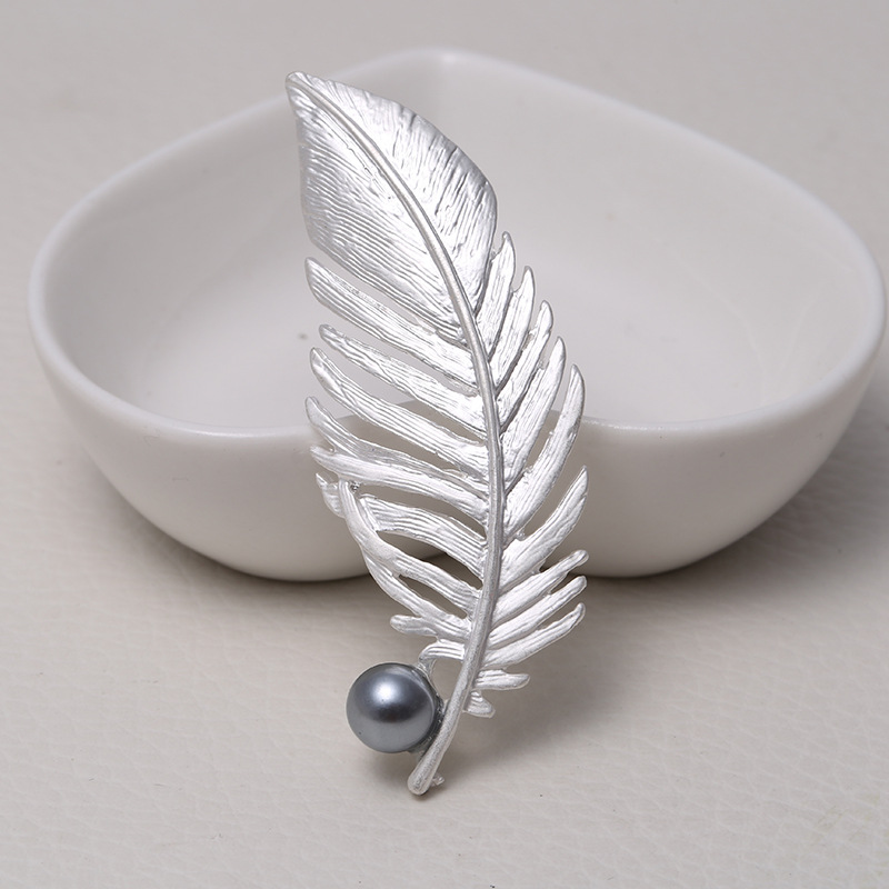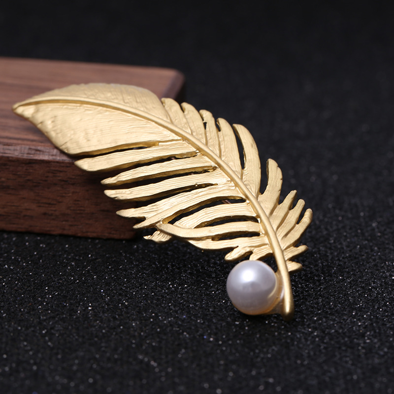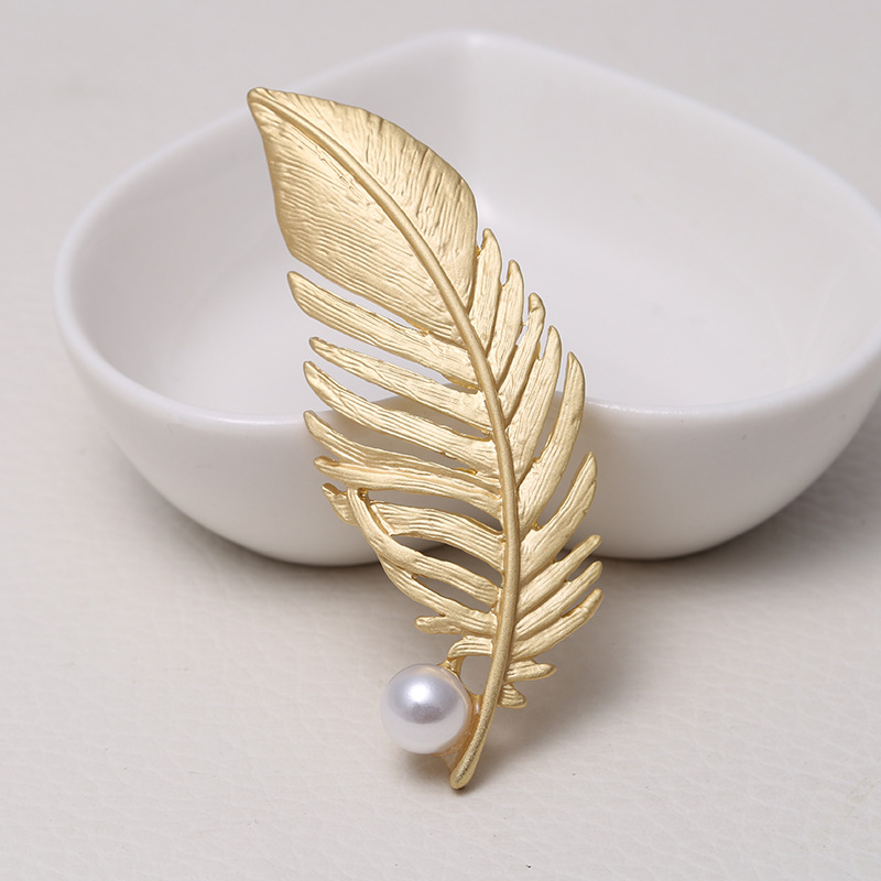 Color: gold glossy feather brooch, silver glossy feather brooch