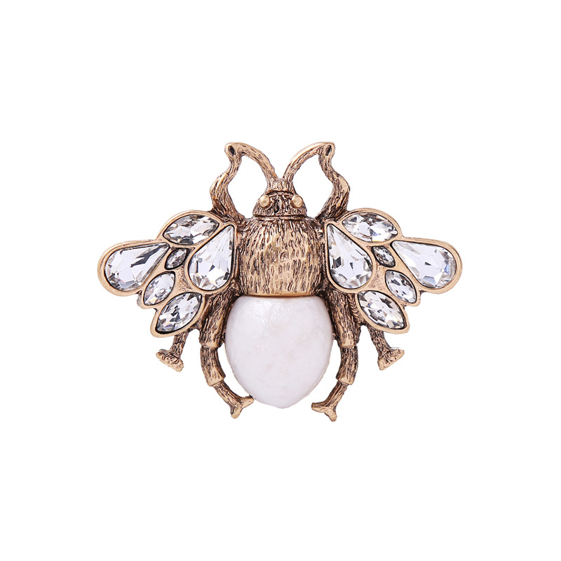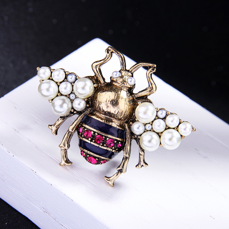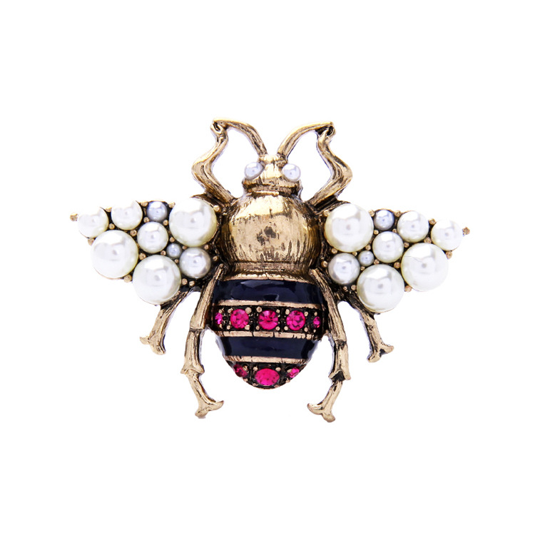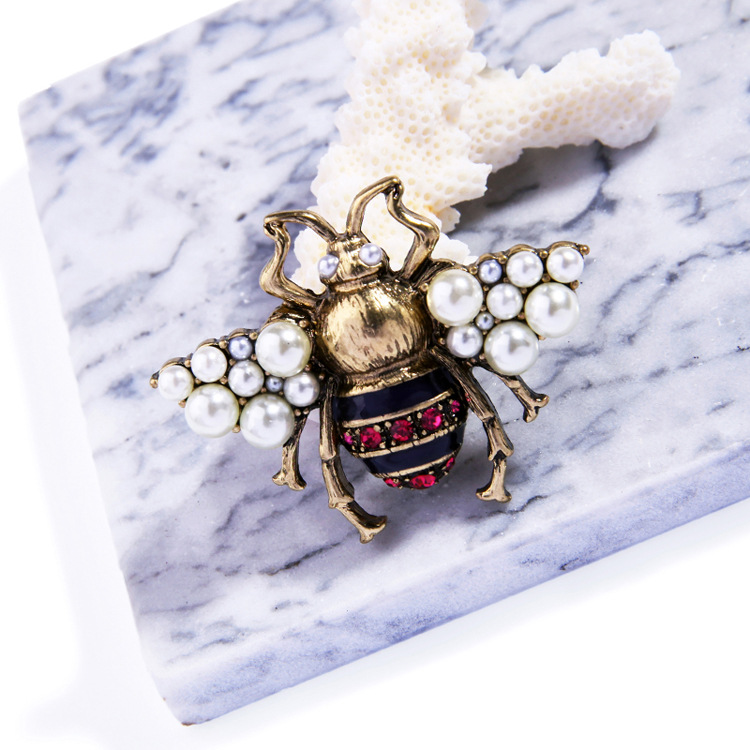Retro alloy oil drop pearl insect brooch European and American coat corsage
