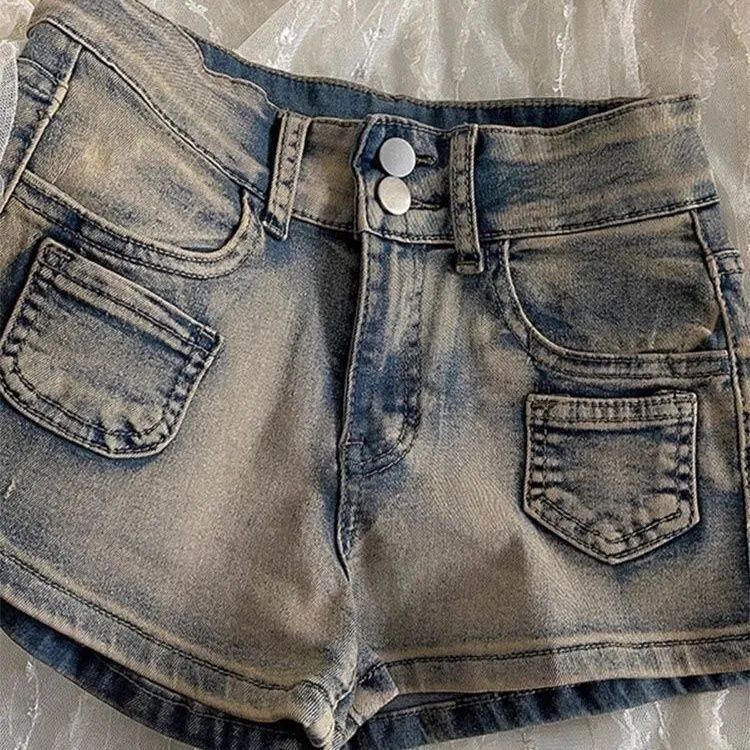 Retro American-Style High-Waisted Denim Hot Shorts For Women