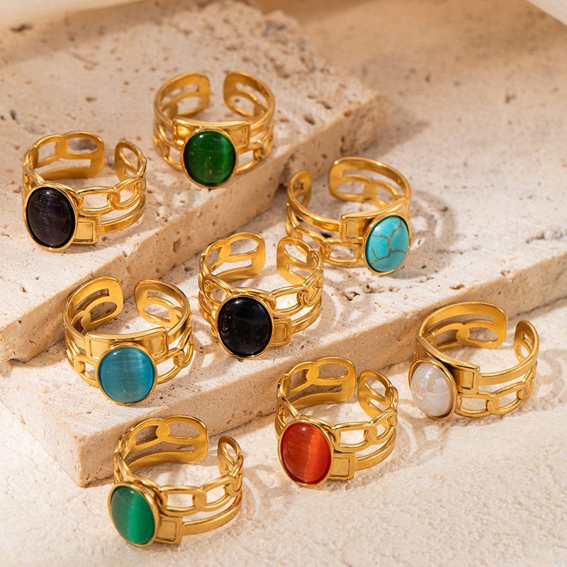 Color: white stone multi-layer geometric ring 0888, Black Stone multi-layer geometric ring 0889, dark blue stone multi-layer geometric ring 0890, Blue grain stone multi-layer geometric ring 0891, blue stone multi-layer geometric ring 0892, orange stone multi-layer geometric ring 0893, turquoise multi-layer geometric ring 0894, turquoise multi-layer geometric ring 0895