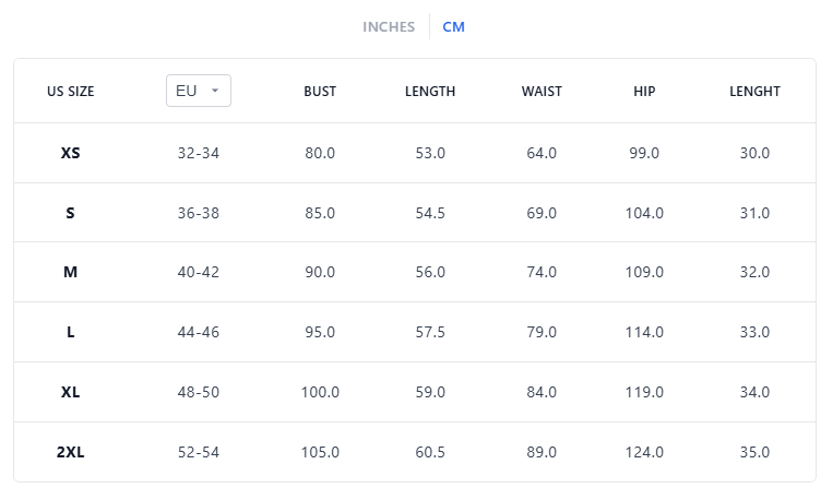 Size: XS/S/M/L/XL/XXL