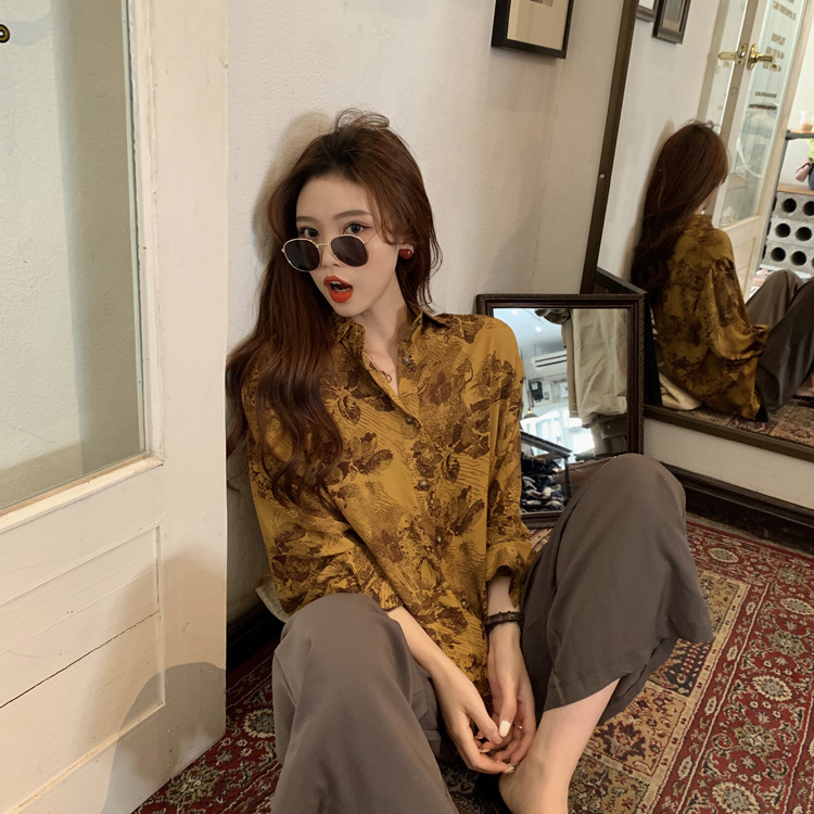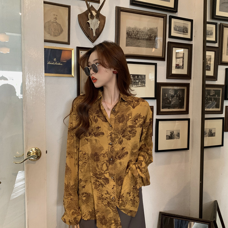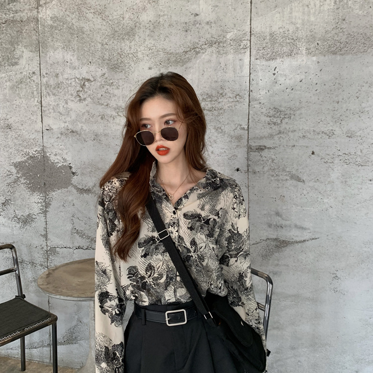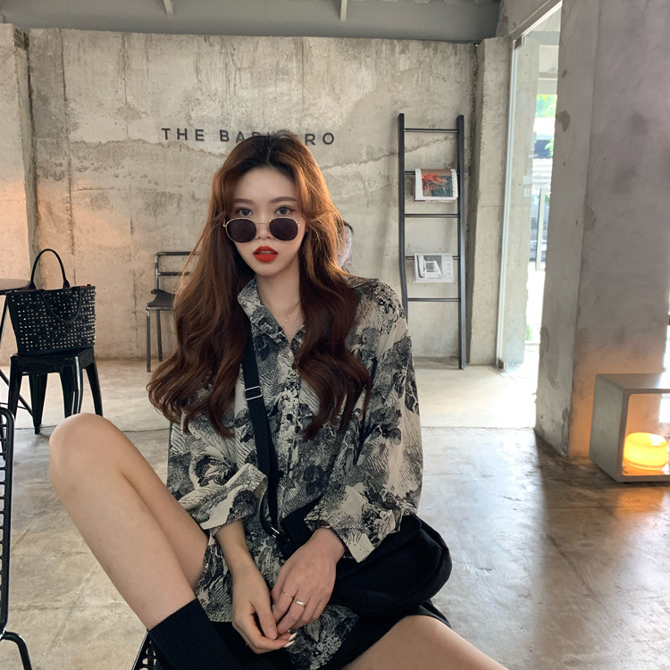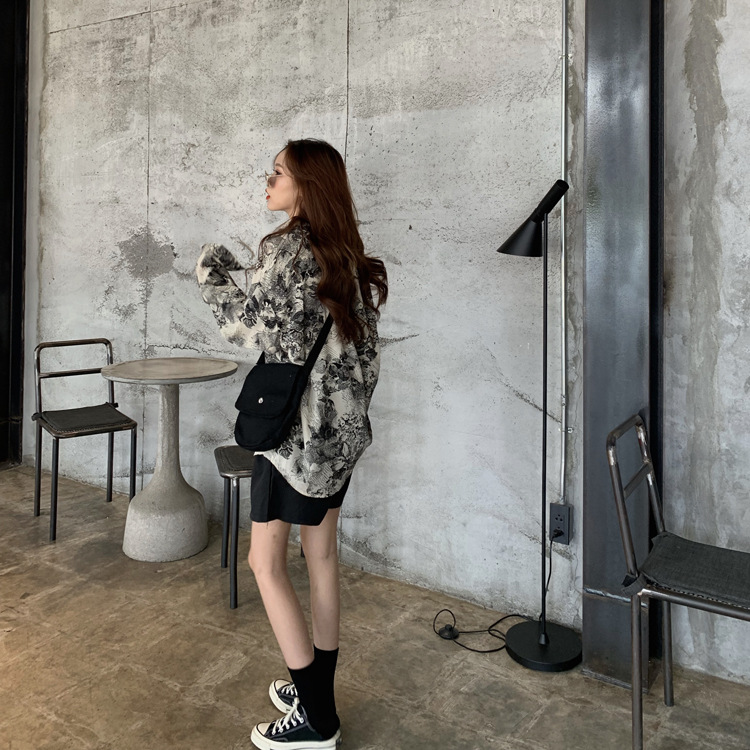 Retro BF Style Loose Casual Abstract Printing Long Sleeve Shirt