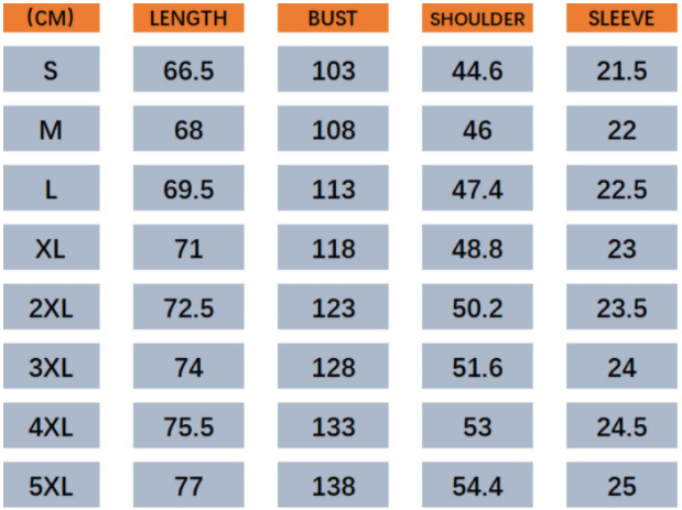 Size: S,M,L,XL,2XL,3XL,4XL,5XL