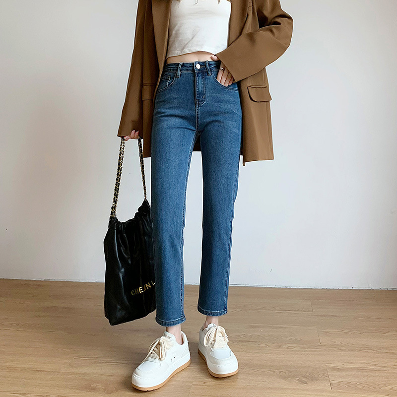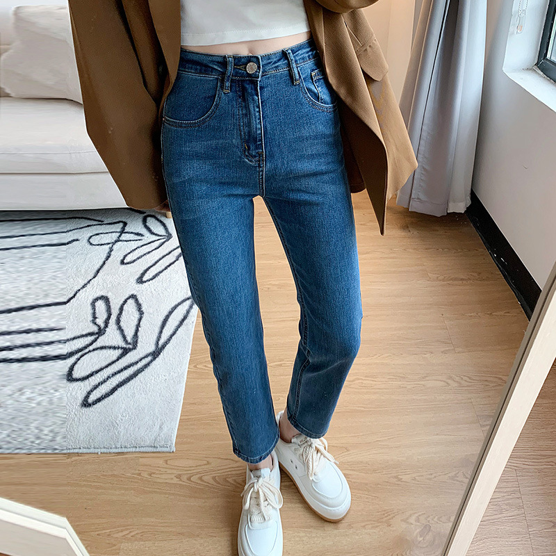 Retro Blue Jeans Women's Loose Smoke Tube High Waist