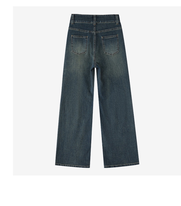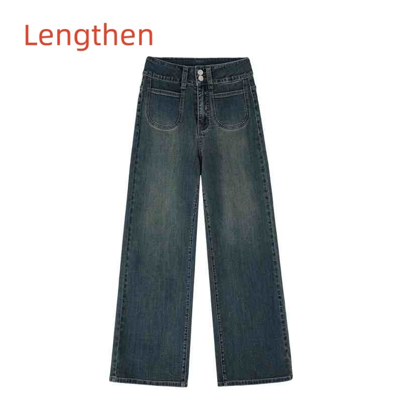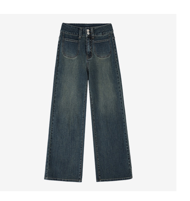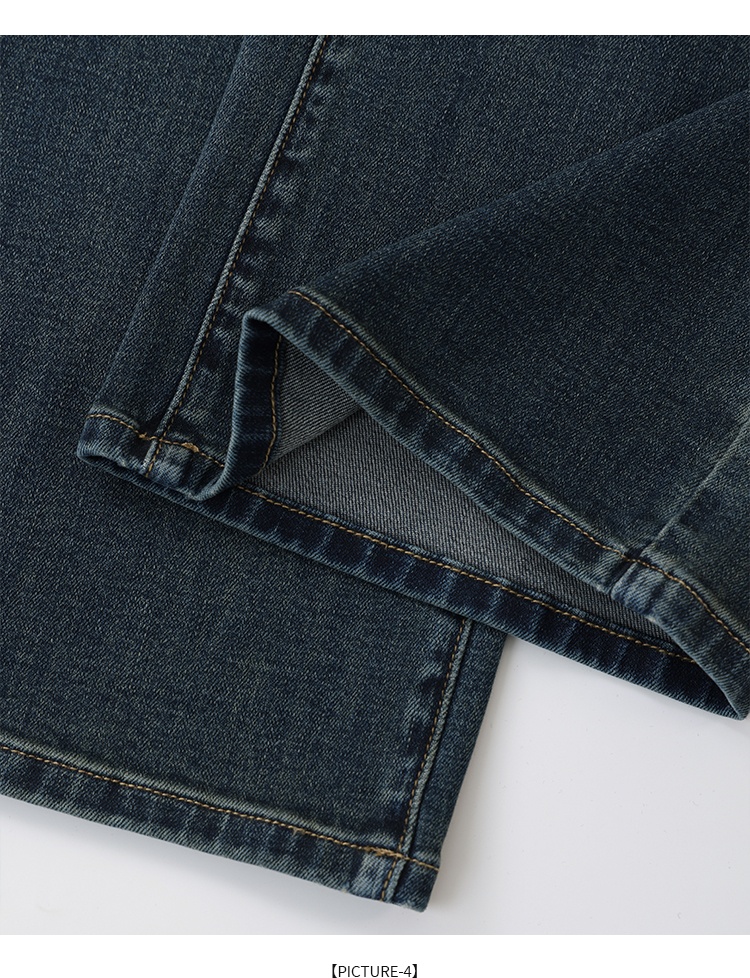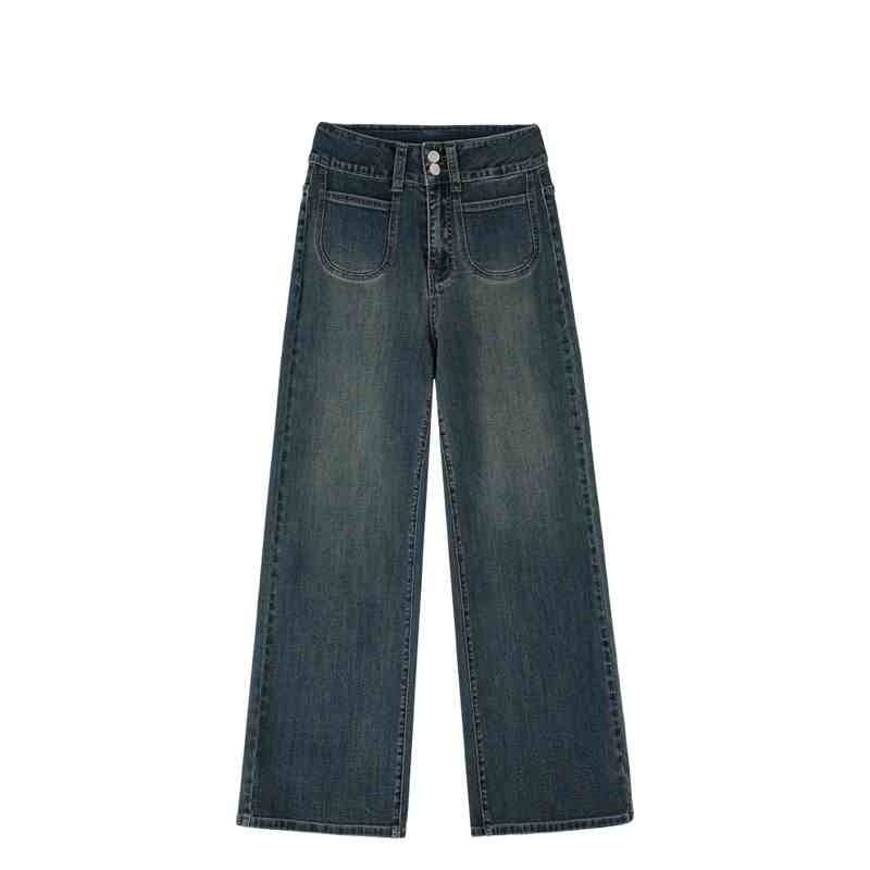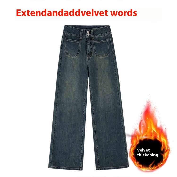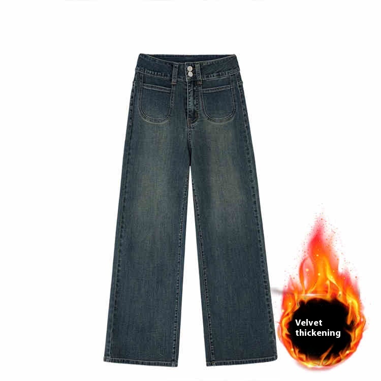 Retro Blue Straight Jeans Women's Autumn And Winter Fleece-lined High Waist