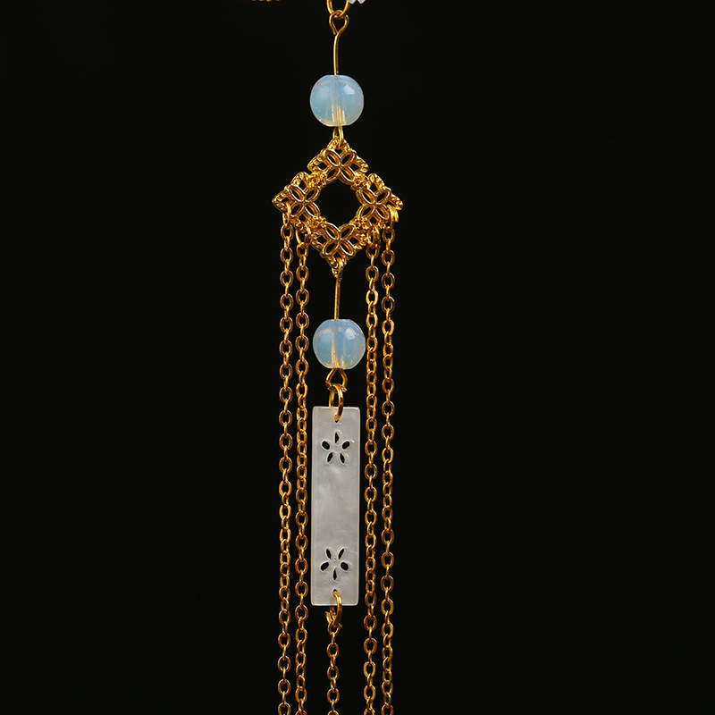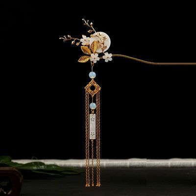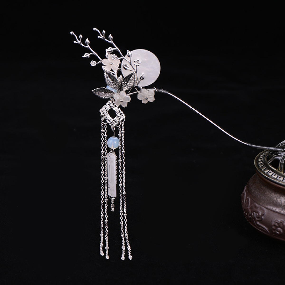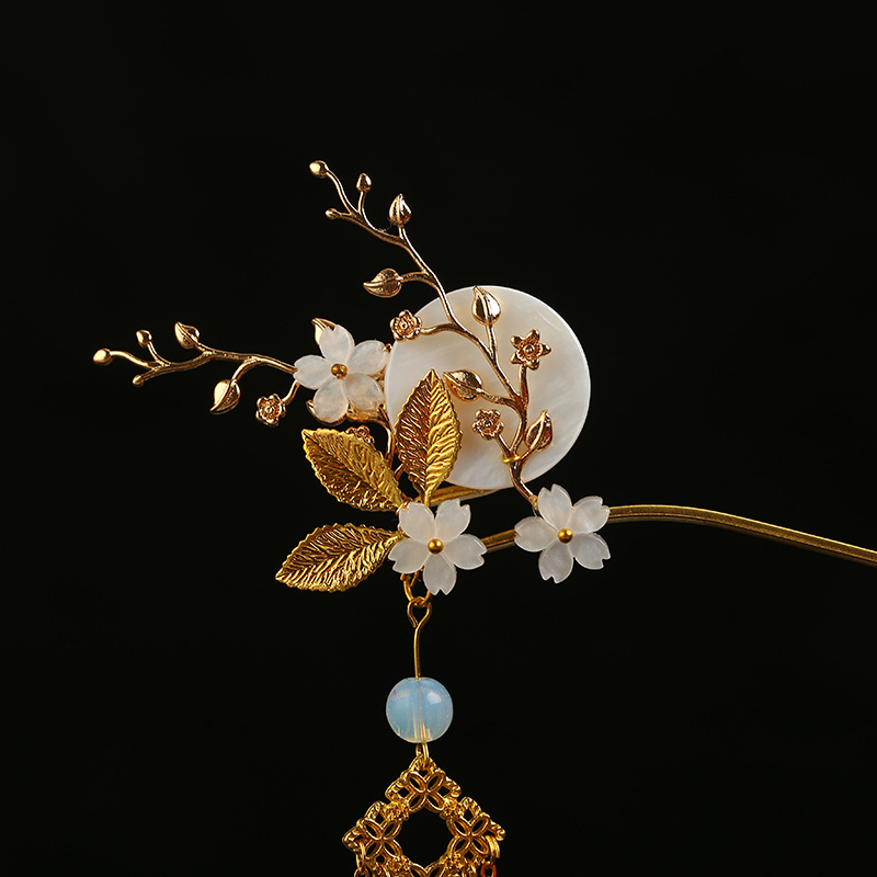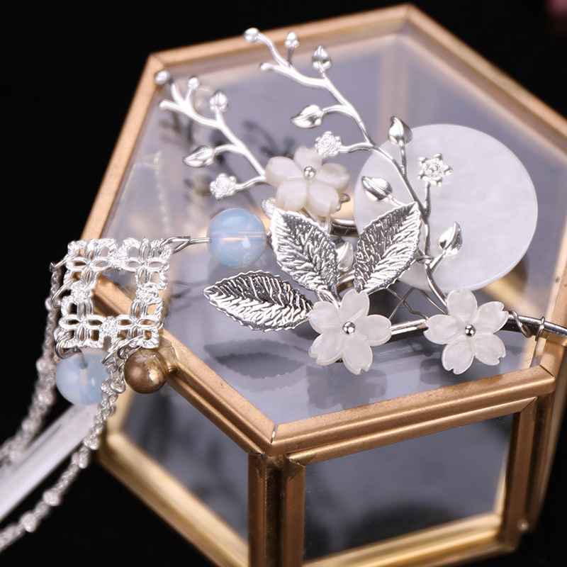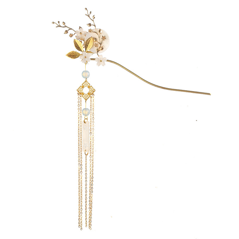 Retro branches, seashells, tassels, hairpins, hairpins, tassels, Hanfu, cheongsam, long tassels