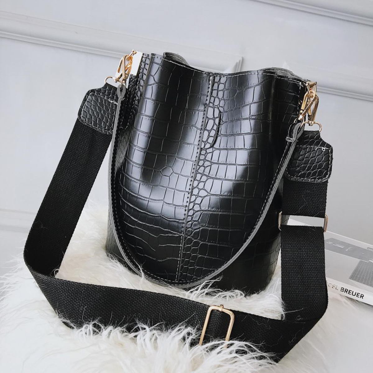 Texture: PUBag shape: bucket shapeColor: black, coffee, green