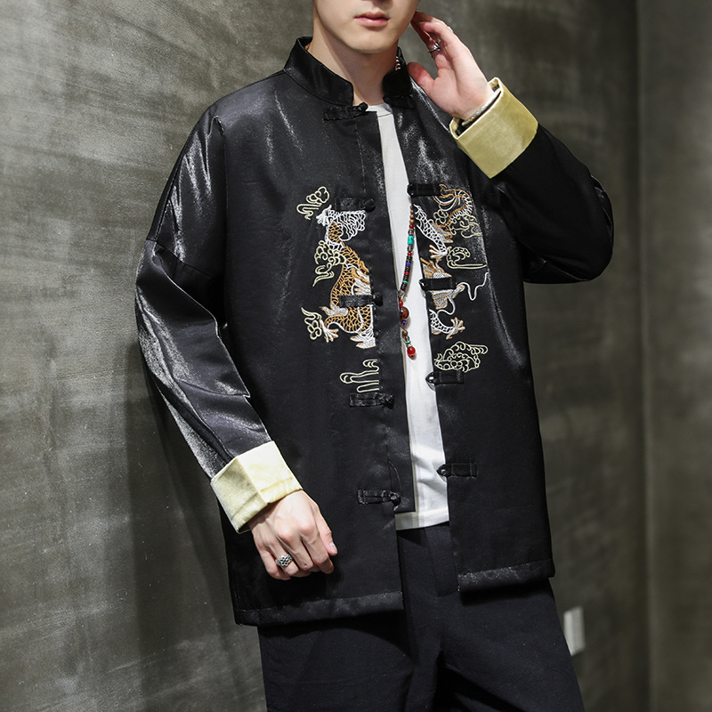 Retro Button Embroidered Jacket Tang Suit Coat Top Hanfu