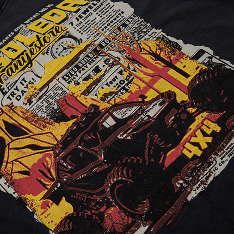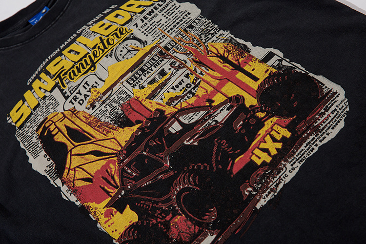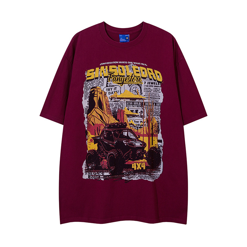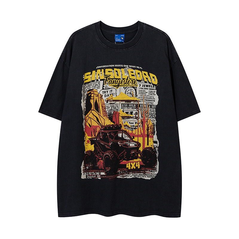 Retro Cartoon Pattern Car Short Sleeve Men