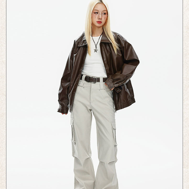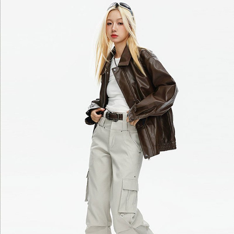 Retro Casual Fashion Drop Shoulder Lapel Leather Coat