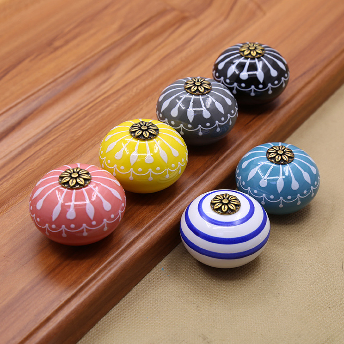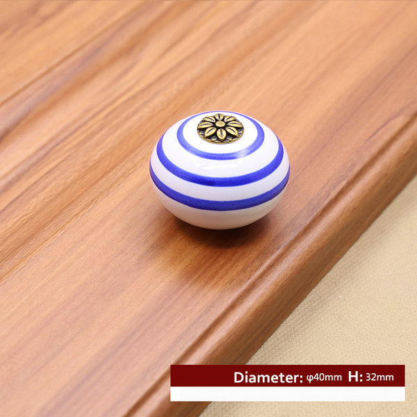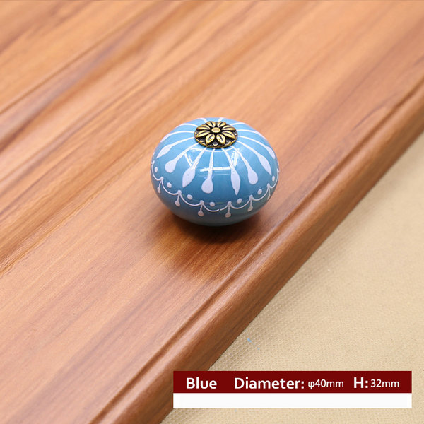 Antique furniture handle ceramic wardrobe button and handle white door button blue rose closet drawer kitchen handle
