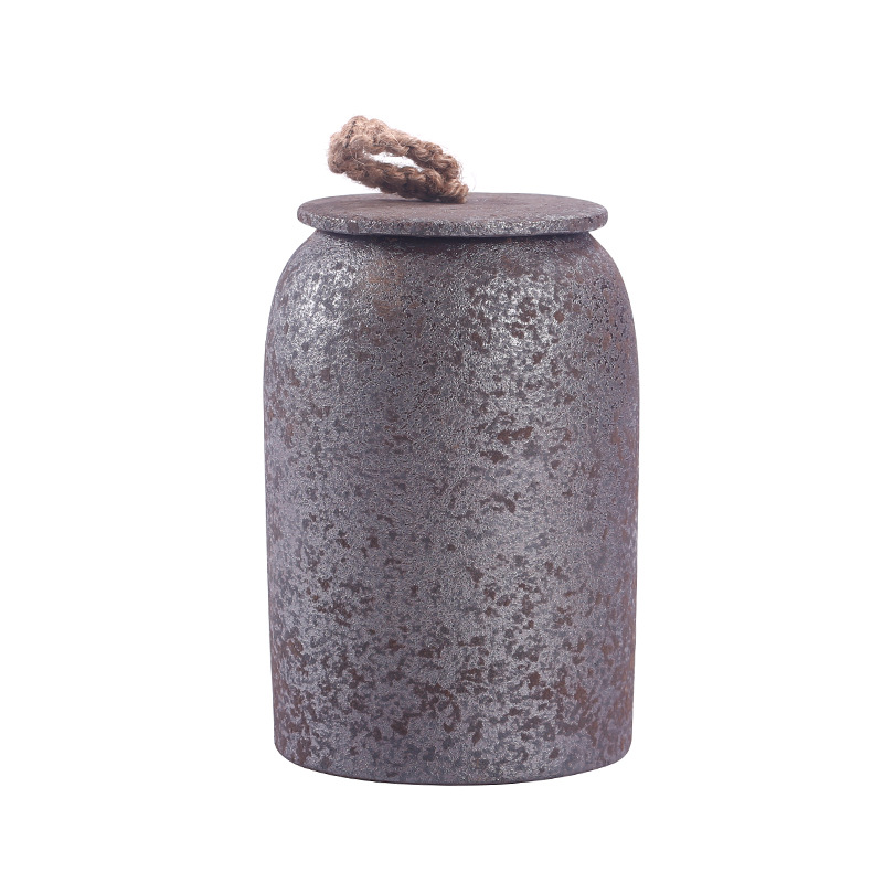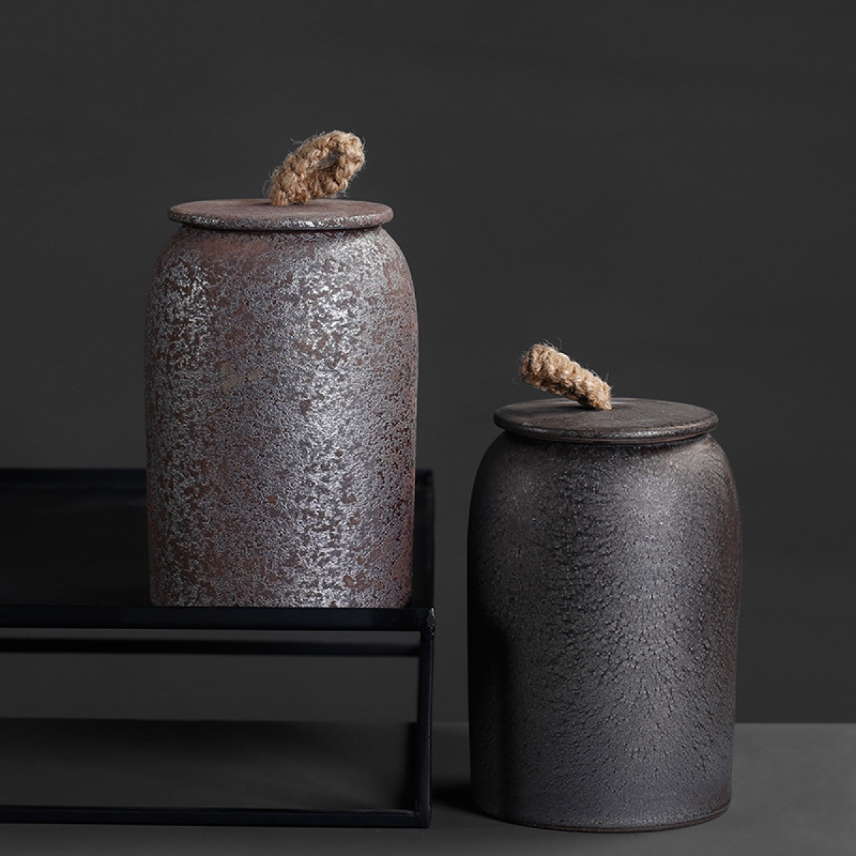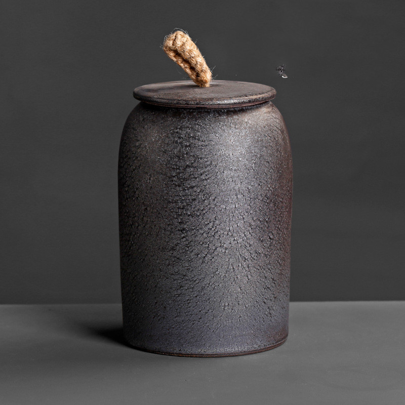 Color; stoneware rust-glazed straight-post tea caddy, stoneware silver rust-glazed straight post-tea caddy,