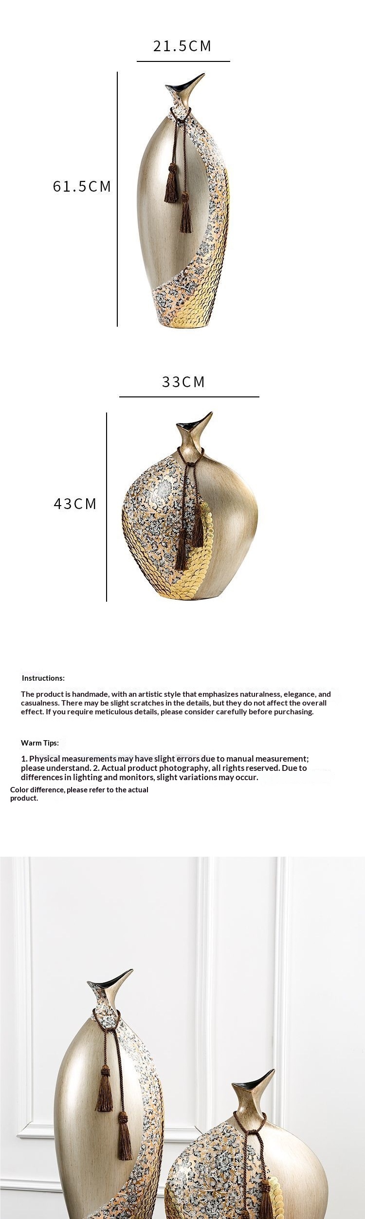 Dimensions: New tall vase, new short vase, new tall-and-short vase set
