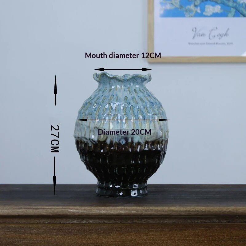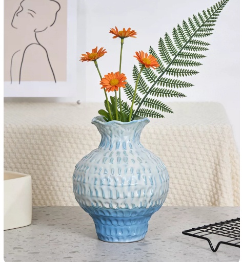 Colors: Blue-ground kiln-transformation glaze fluted-mouth vase with coil decoration, black-ground kiln-transformation glaze fluted-mouth vase with coil decoration, lapis lazuli-glazed fluted-mouth vase with coil decoration, kiln-transformation glaze fish-tail vase with wave patterns