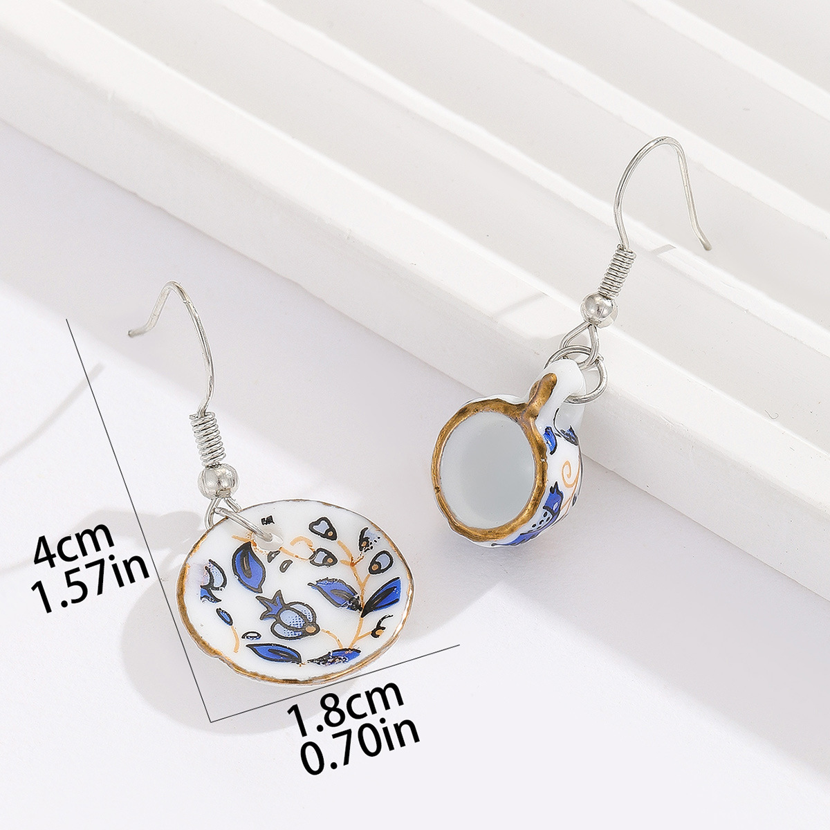 Color: ceramic floral bowl ear hook, blue cup and saucer ear hook, pink cup and saucer ear hook