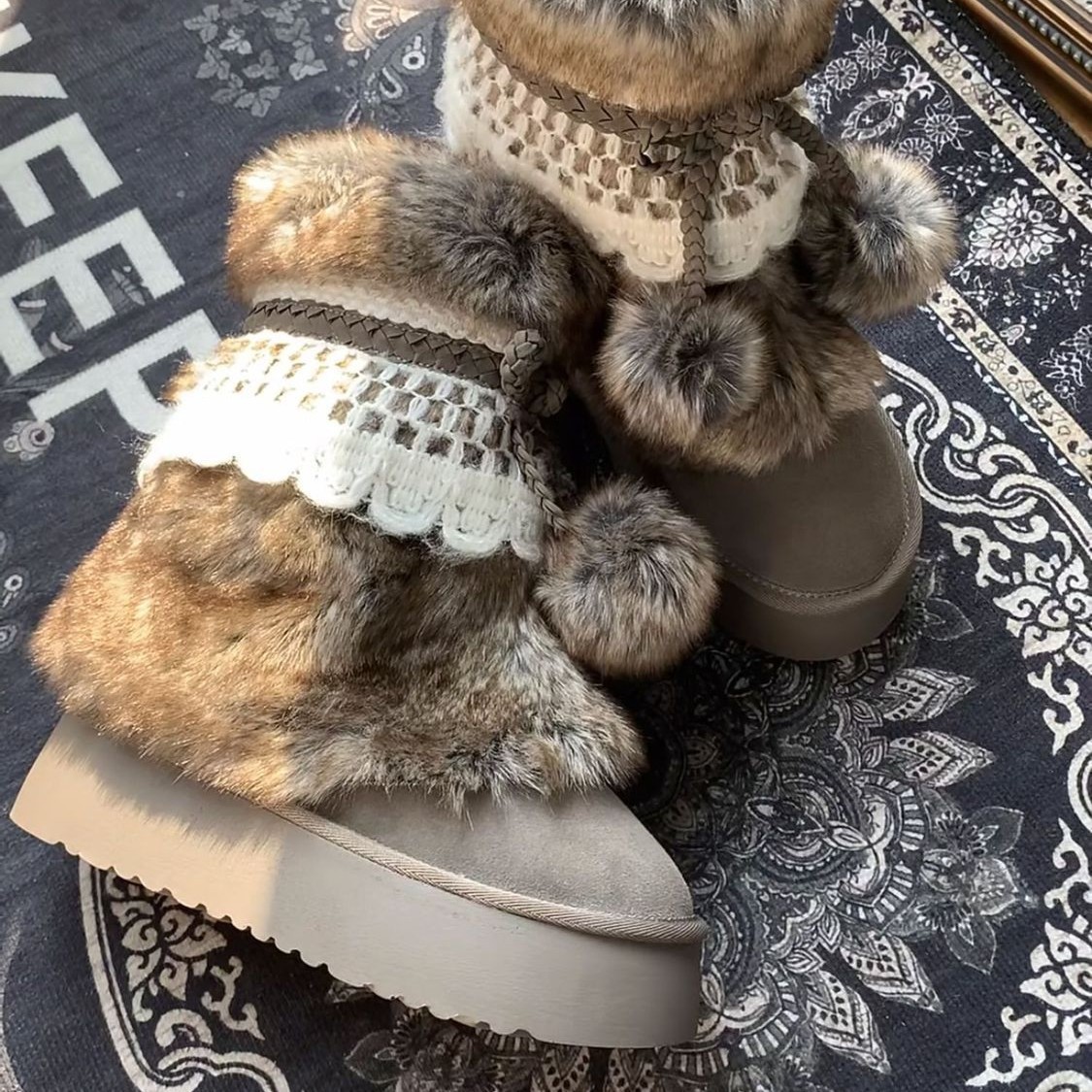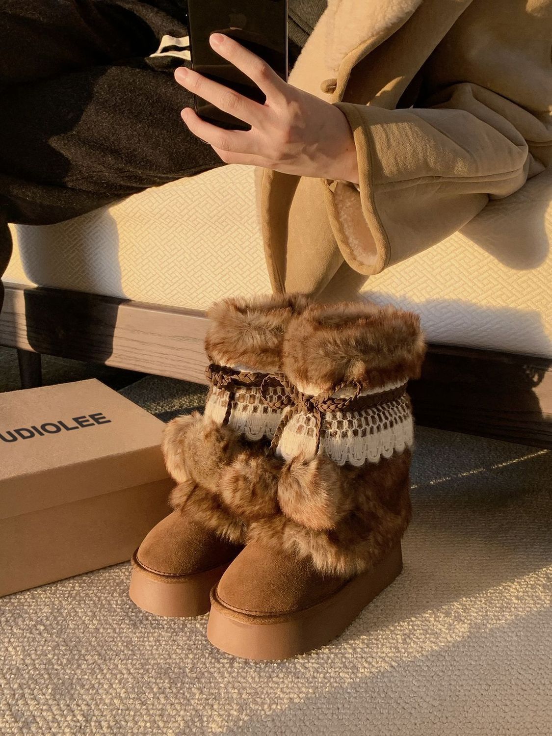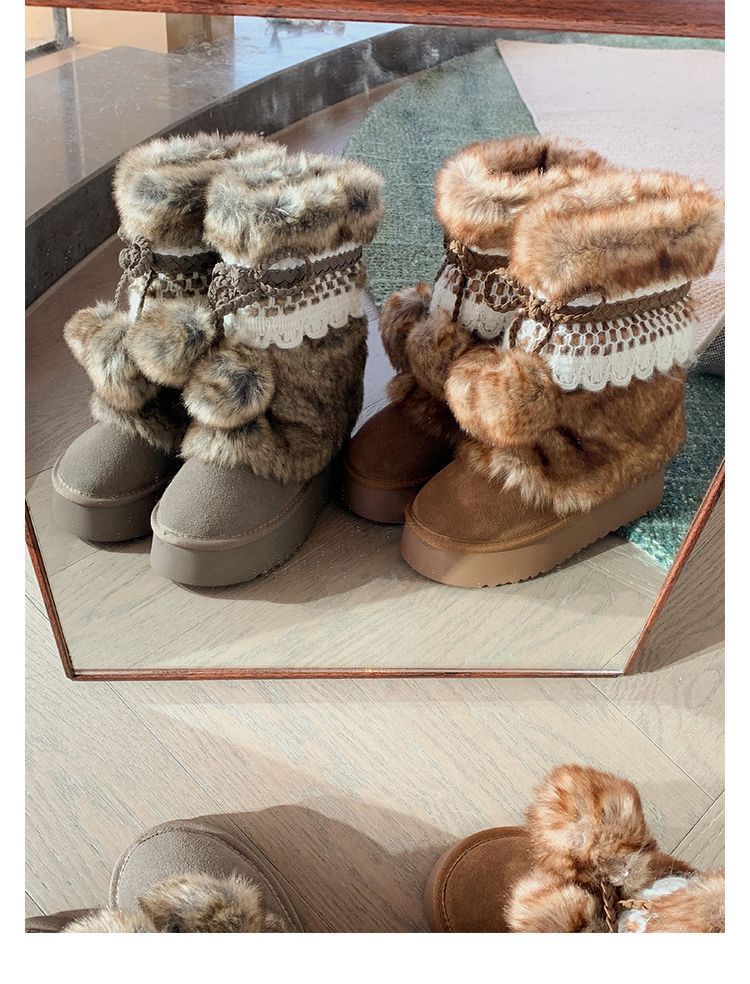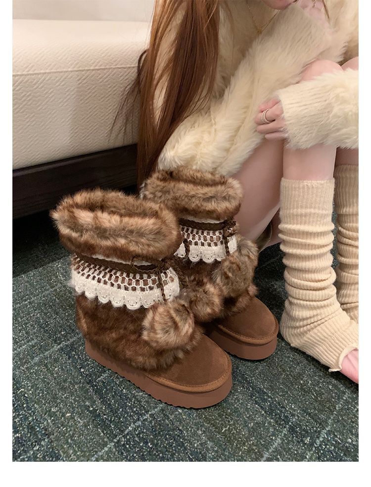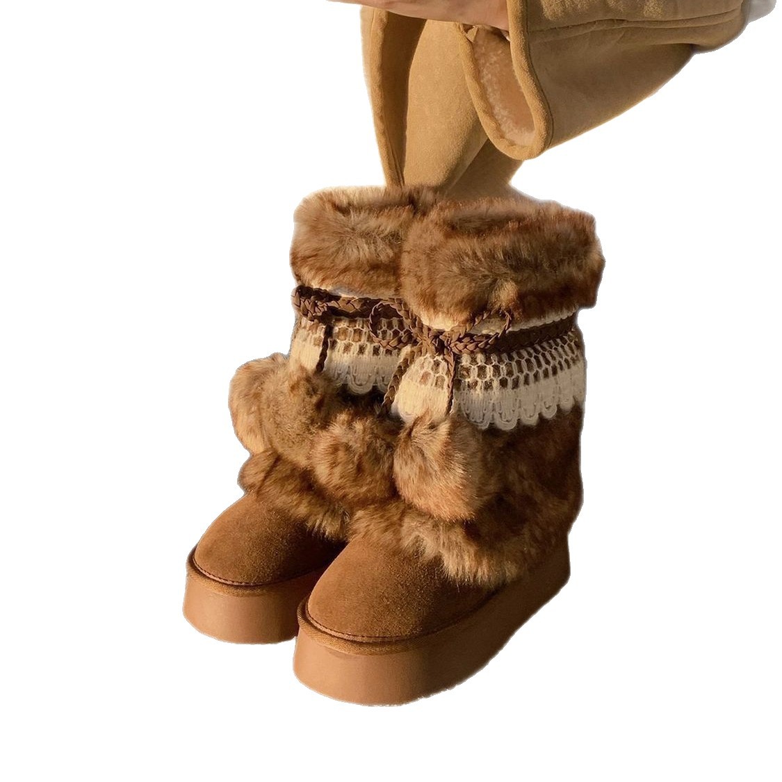 Retro Chunky Brown Boots With Fleece-lined Ankle Boots