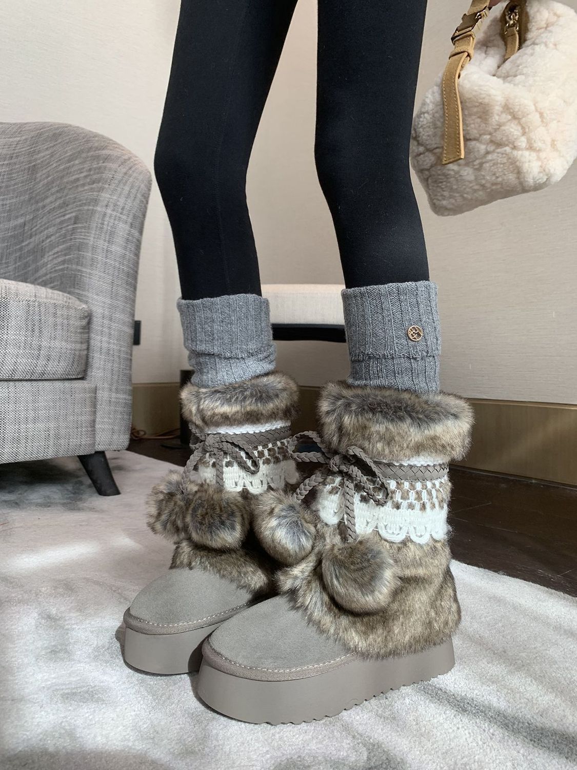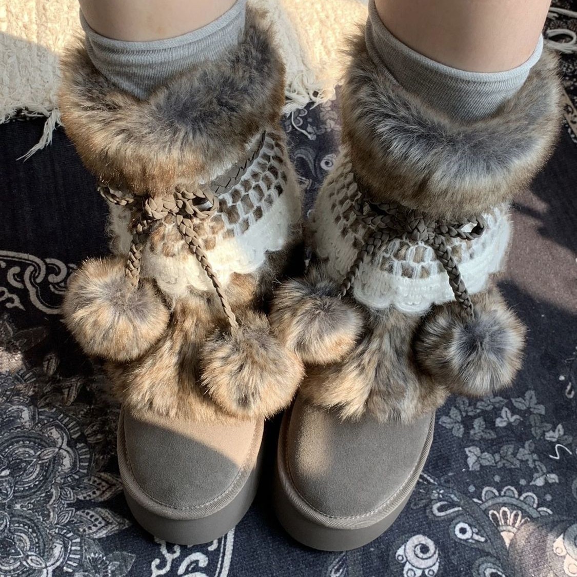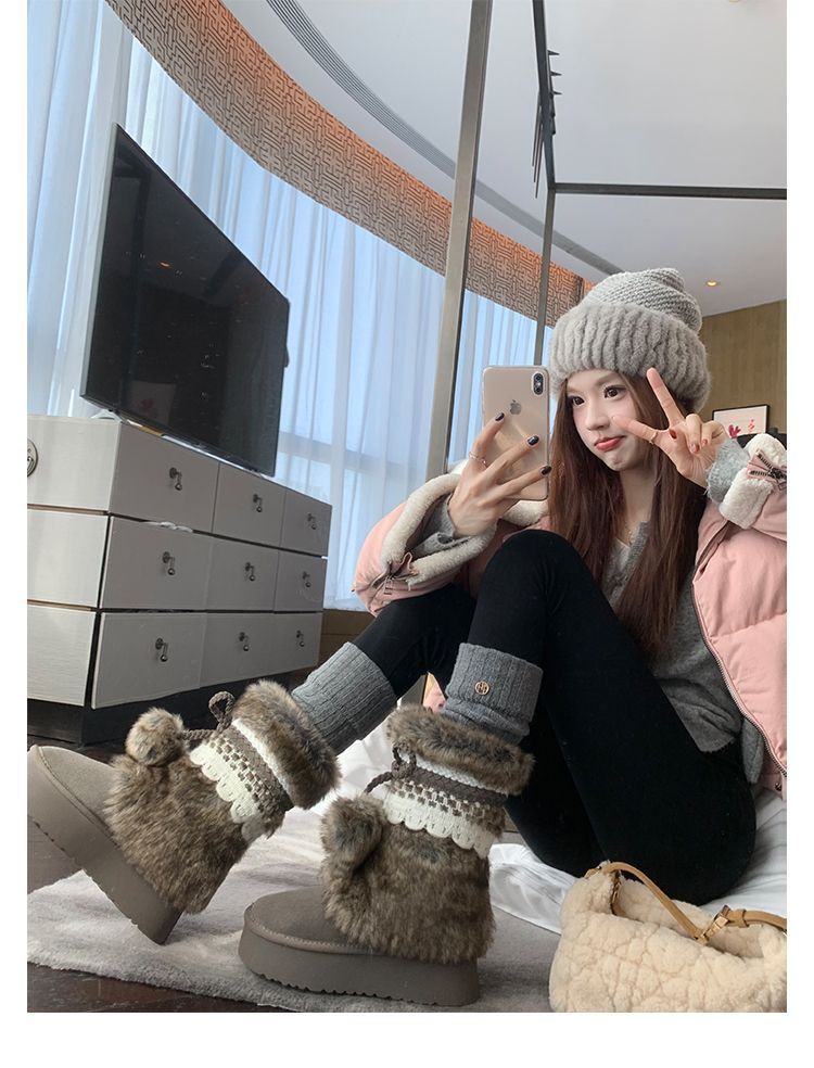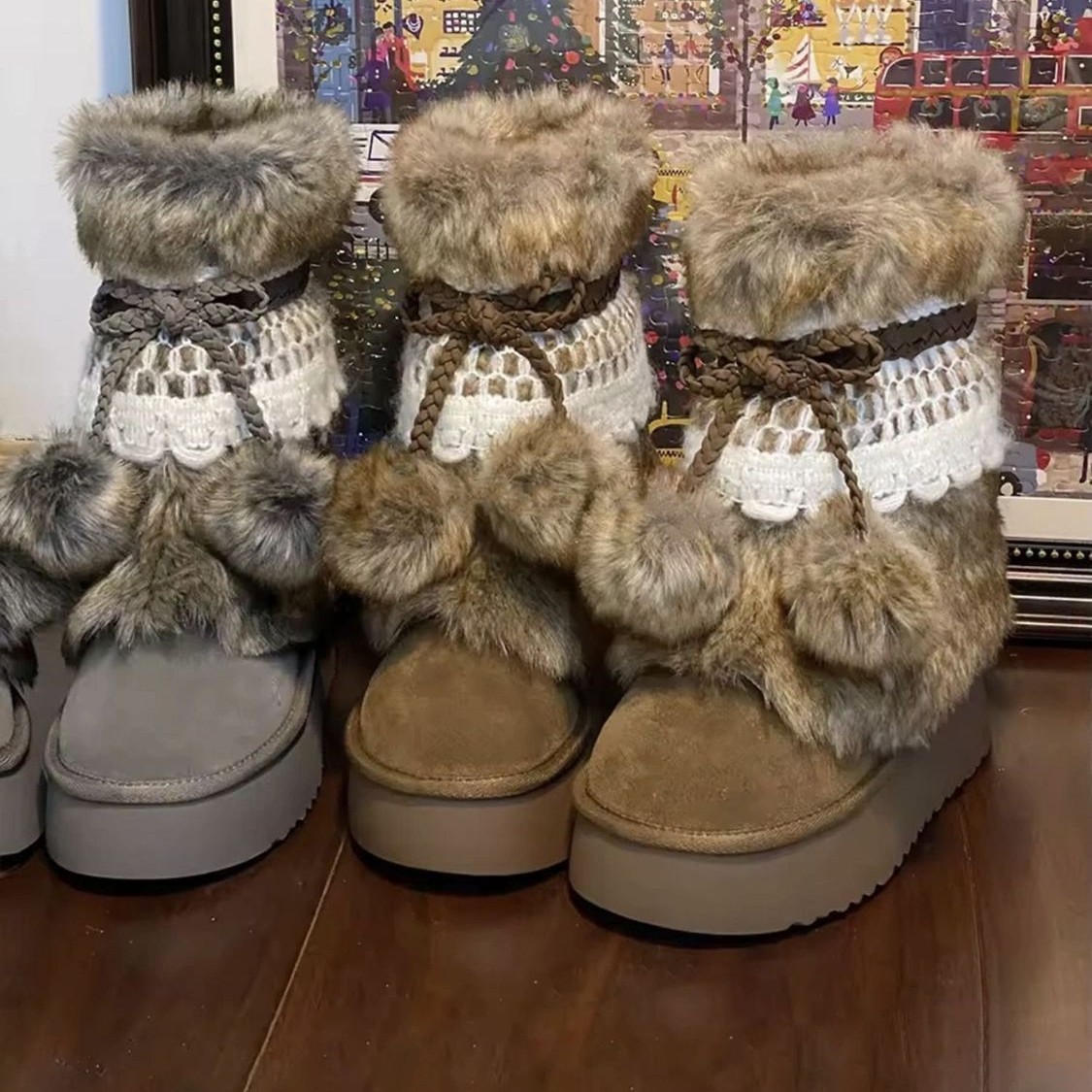 Retro Chunky Brown Boots With Fleece-lined Ankle Boots