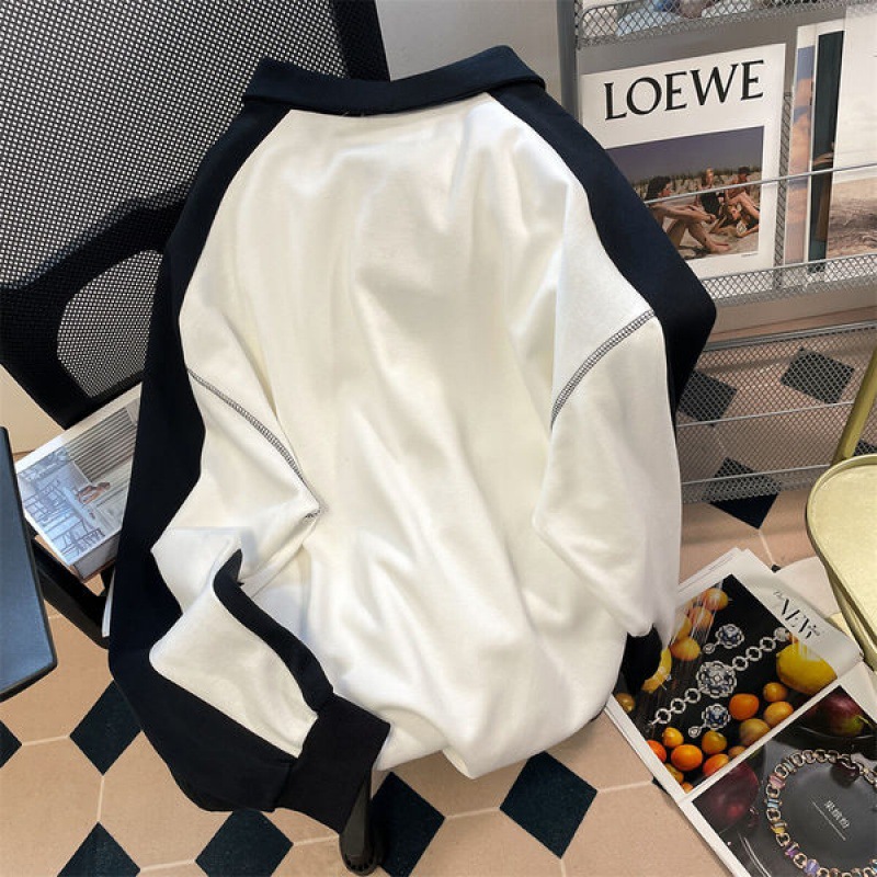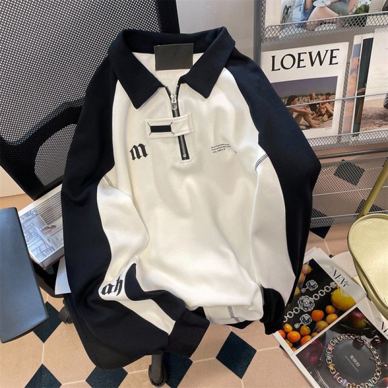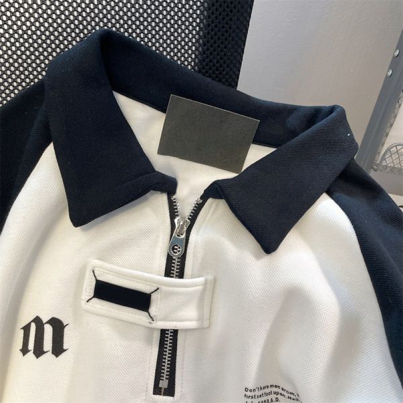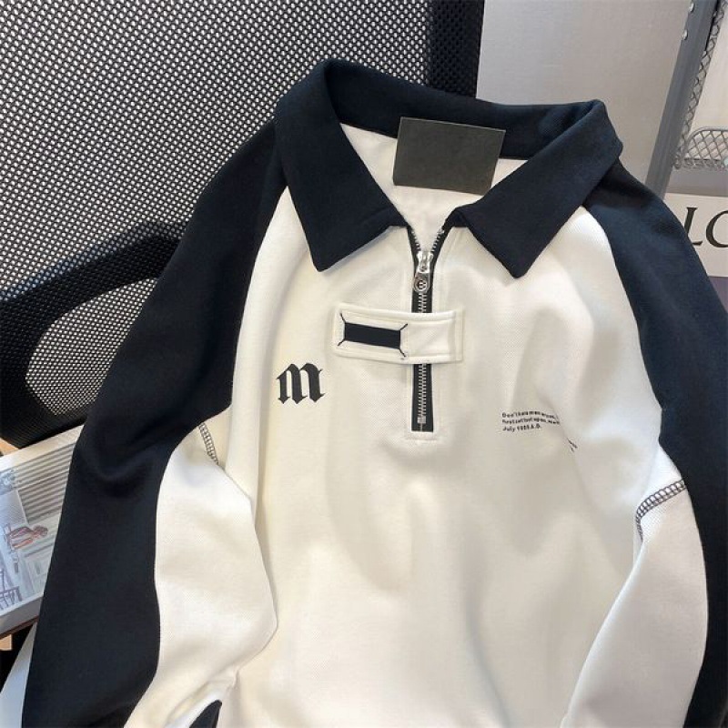 Retro College Half Zipper Polo Collar Thin Sweater