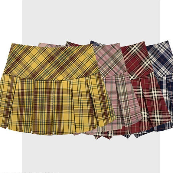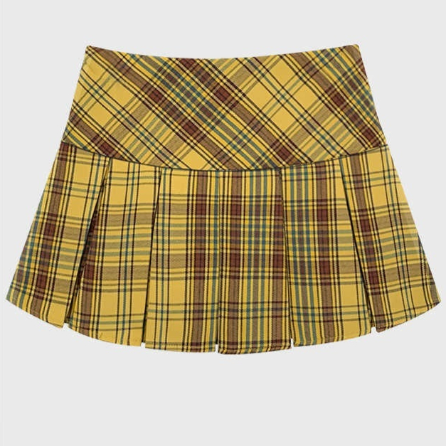 Retro College Style Yellow Jk Plaid Pleated Skirt For Women