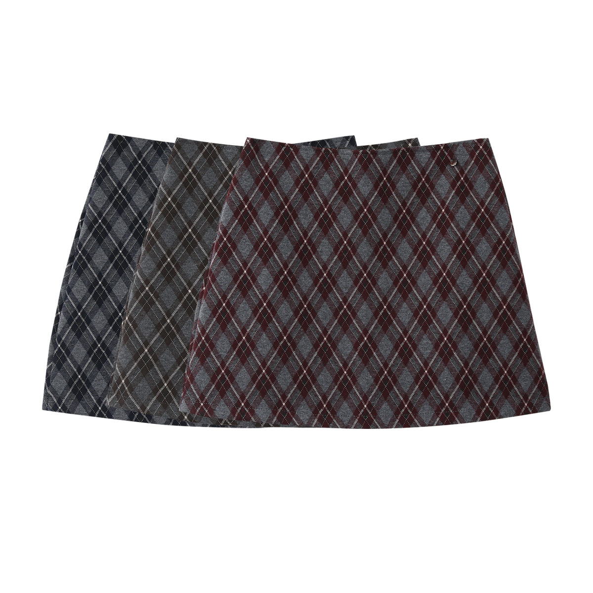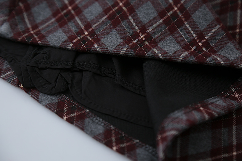 Colors: Black and blue plaid, coffee plaid, red plaid, size chart