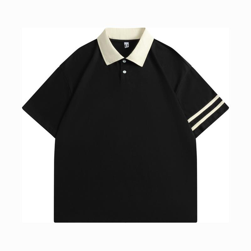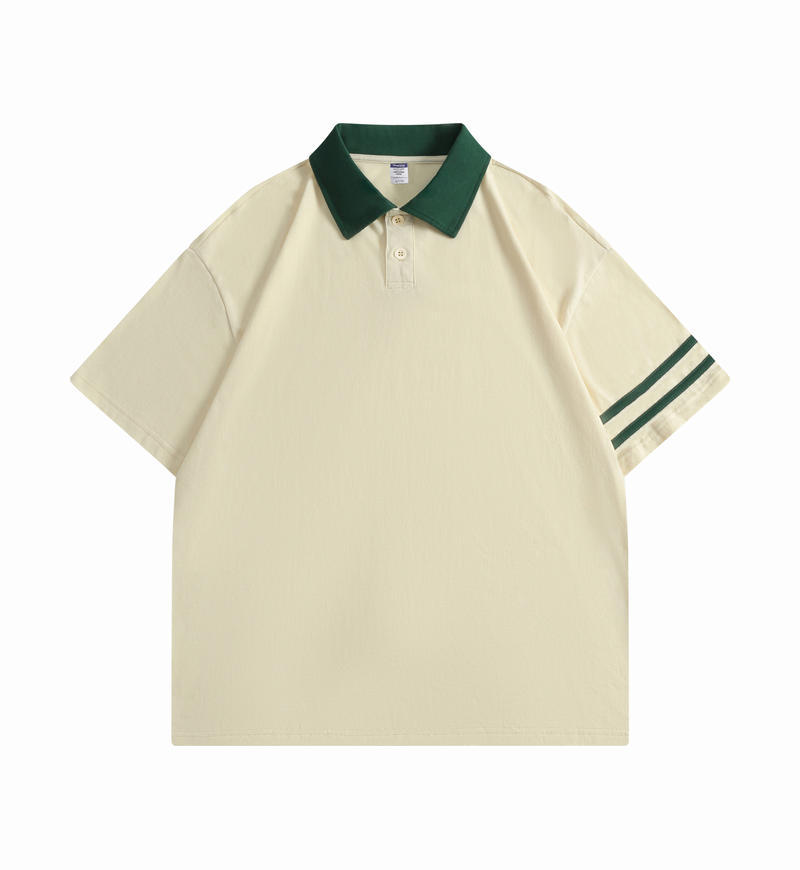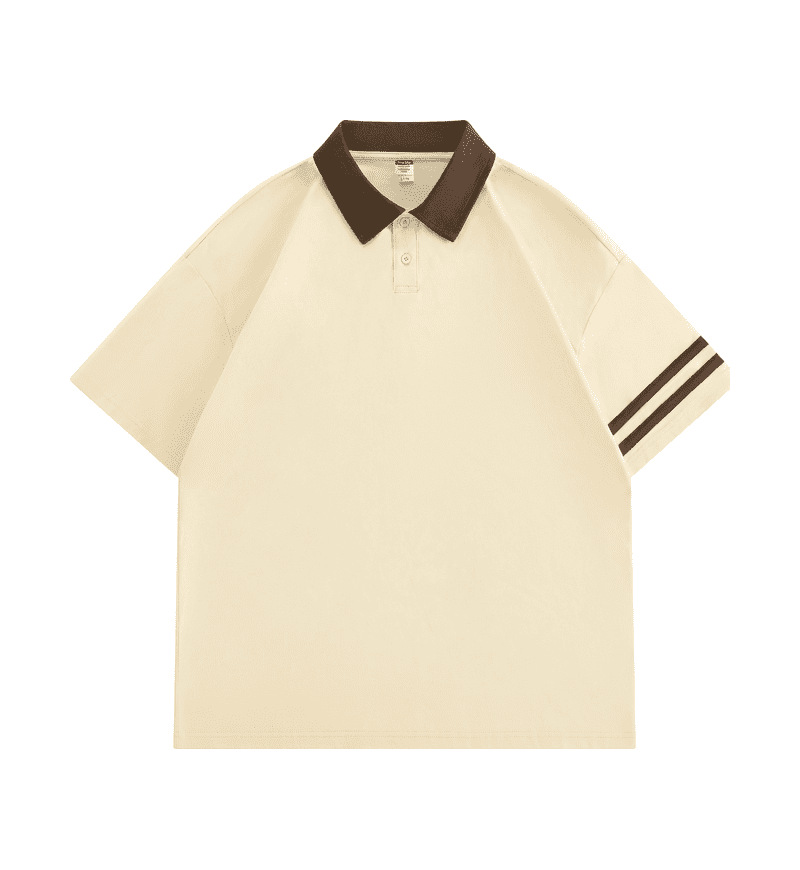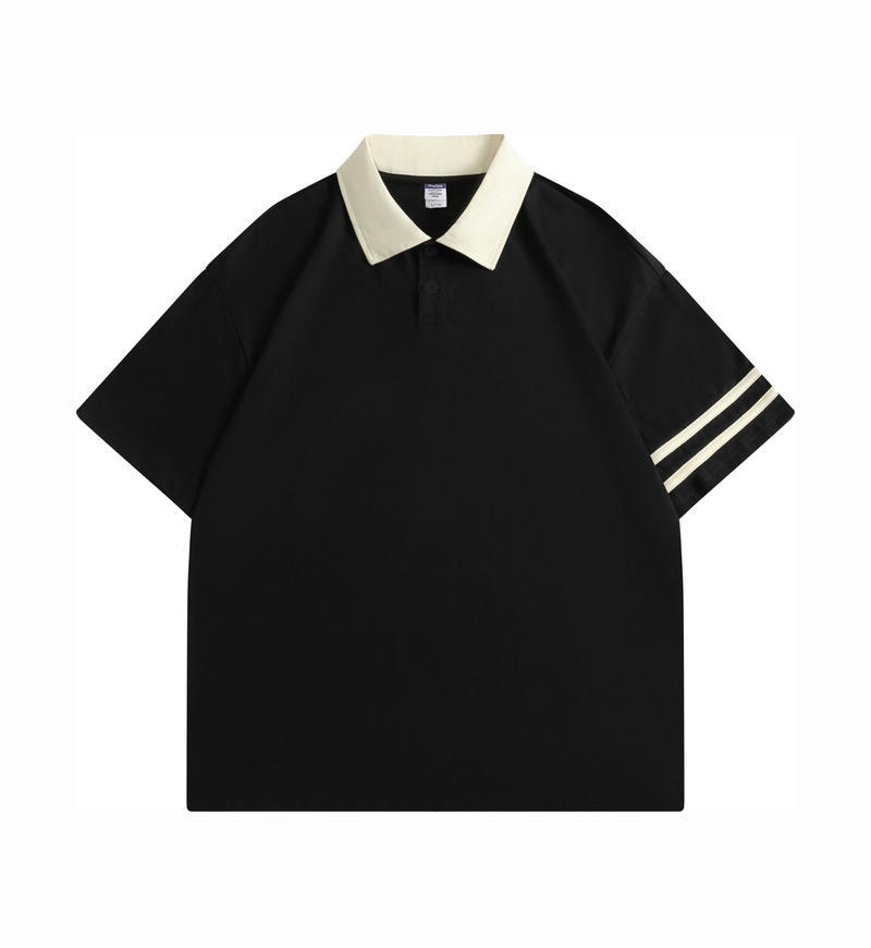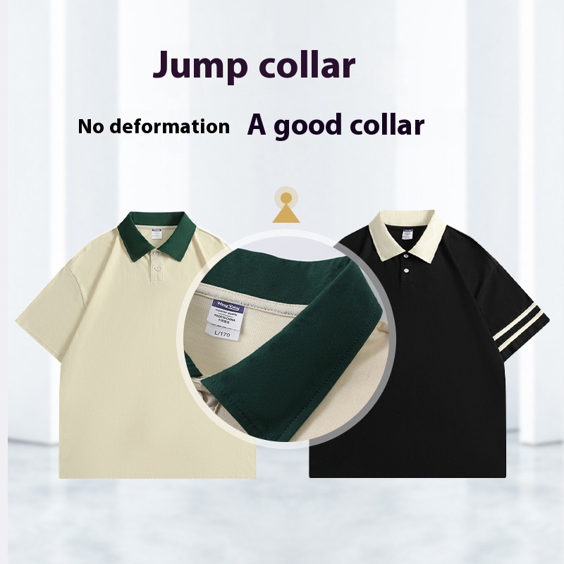 Retro Color Stitching Turnover Neck Short-sleeved T-shirt