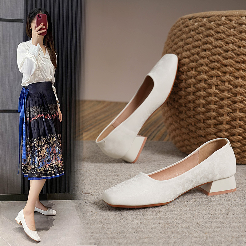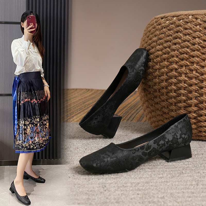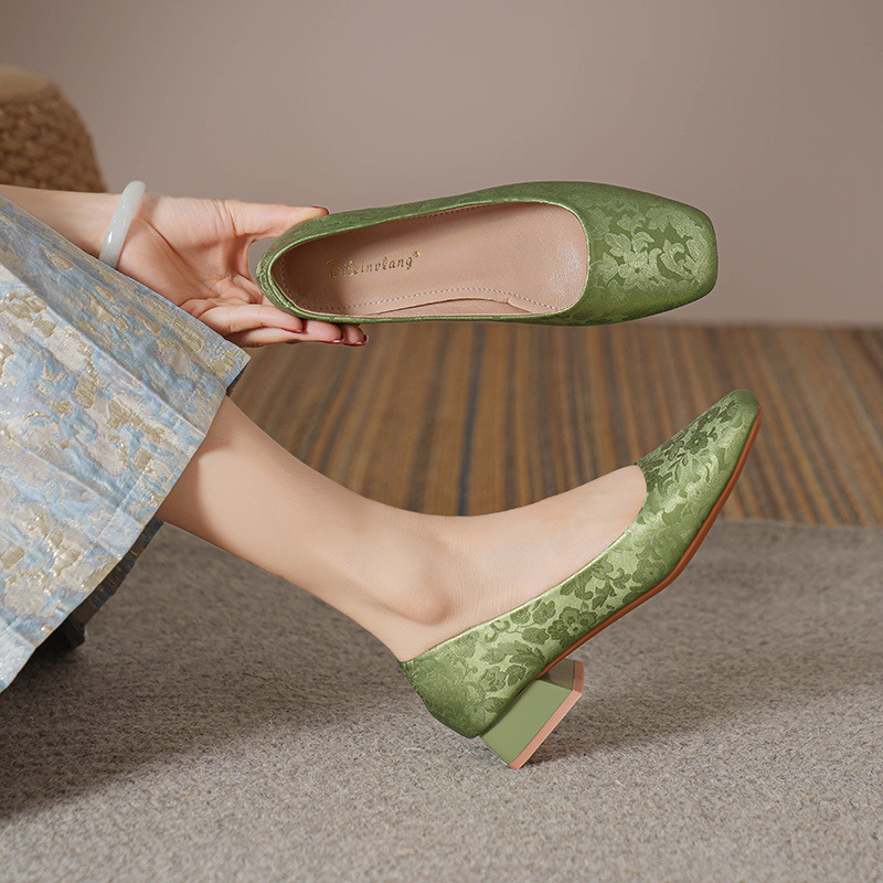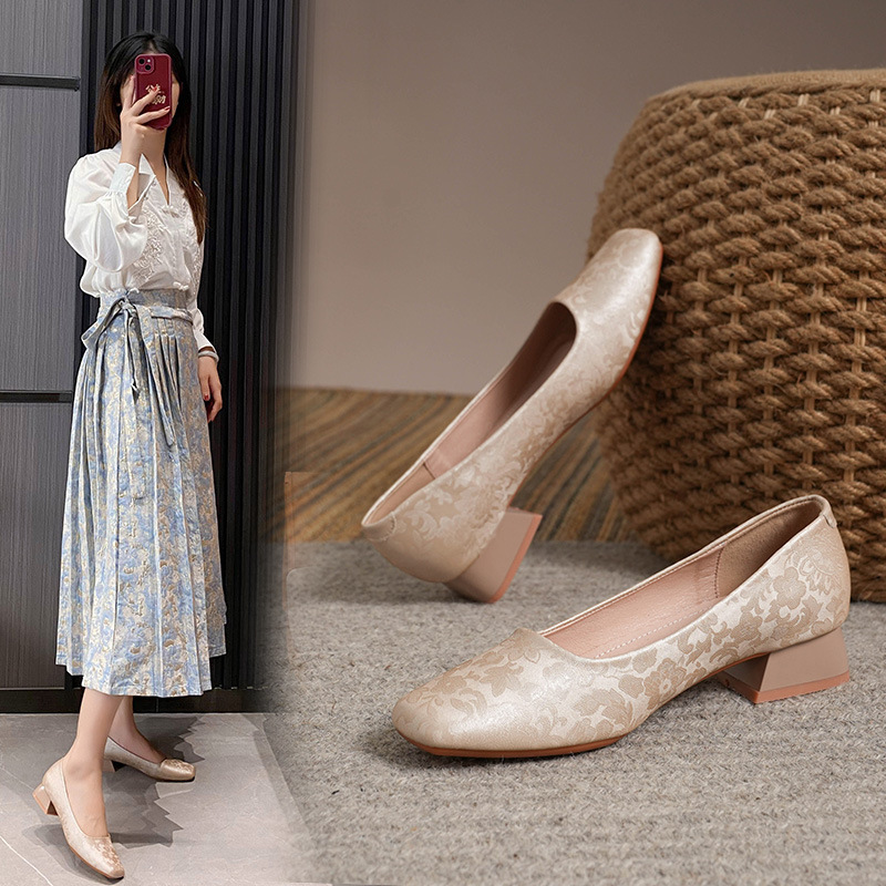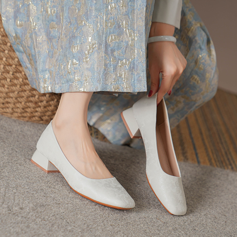 Retro Commuter Soft Leather Square Head Mid-high Heels