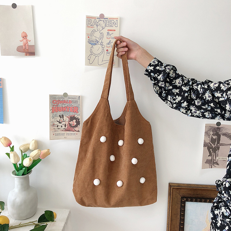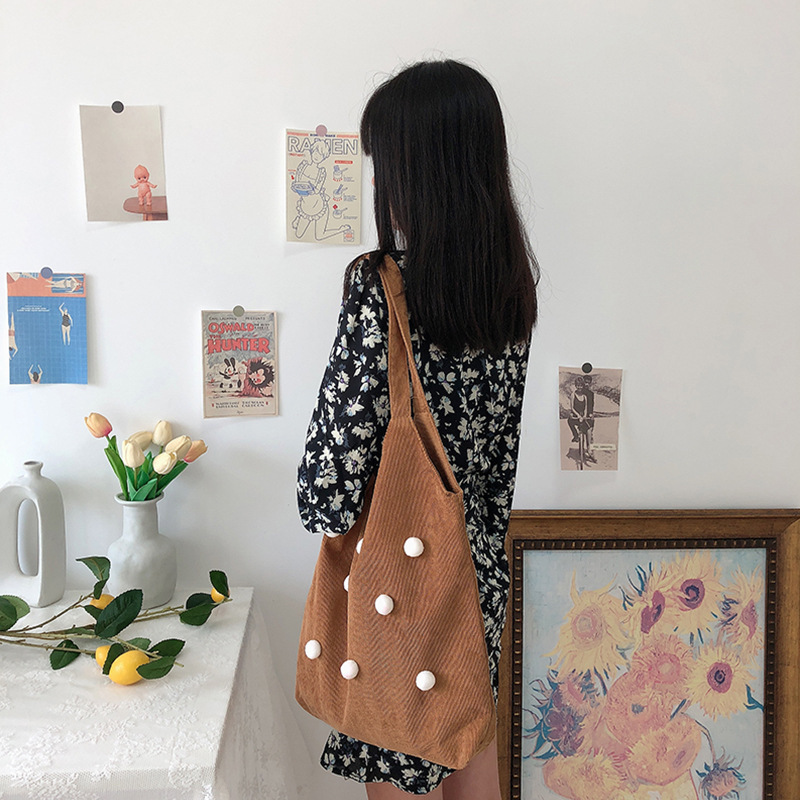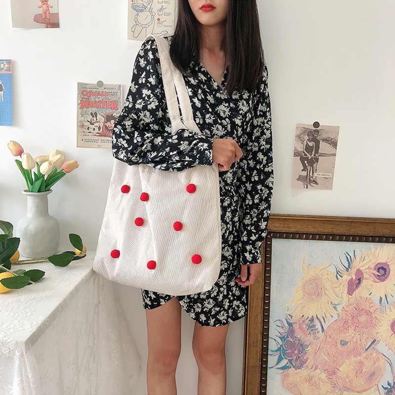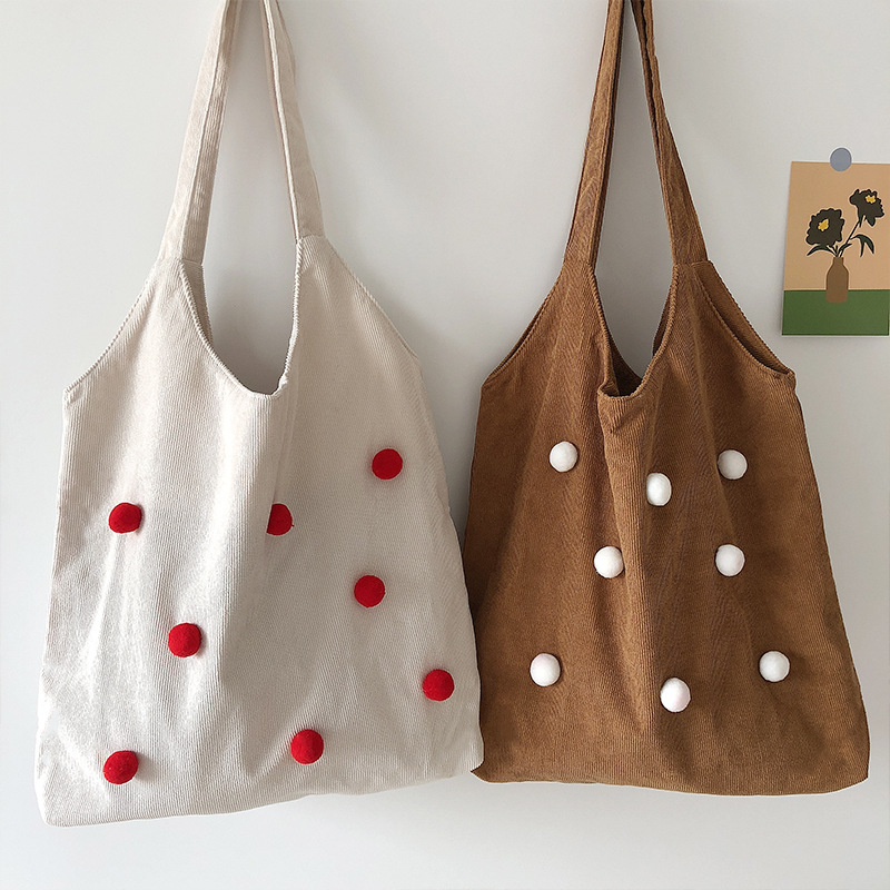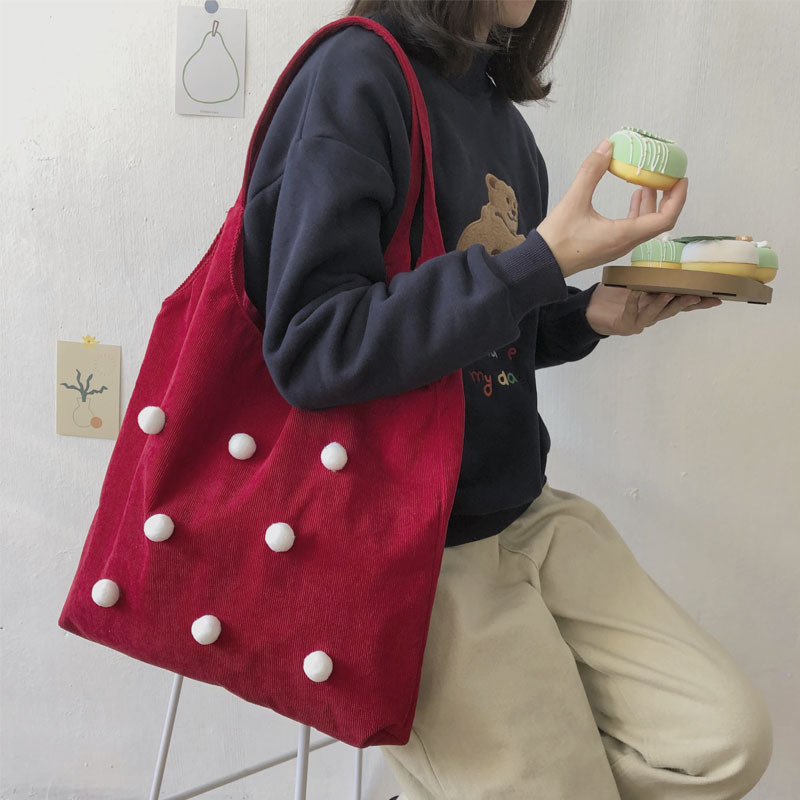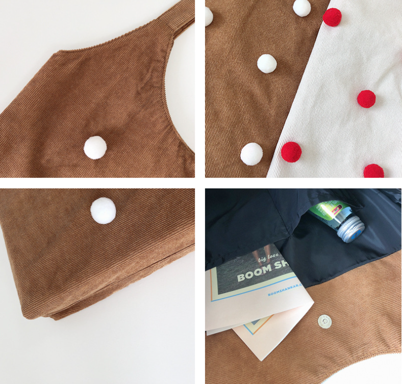 Color: corduroy thin strap ball bag red, corduroy thin strap ball bag beige, corduroy thin string ball bag brown