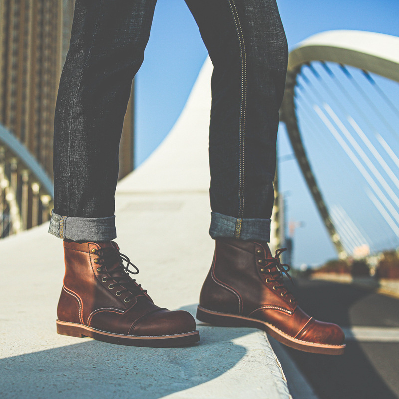 Retro Cowhide Martin Boots Men's Oil Wax Leather Military Boots Worker Boot