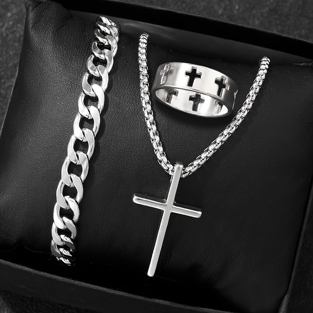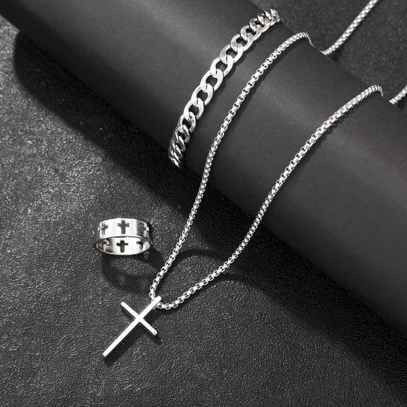 Color: Silver Cross Three-Piece Set, Black Cross Three-Piece Set