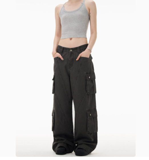 Retro Deconstruction Cargo Jeans Men And Women Loose Casual