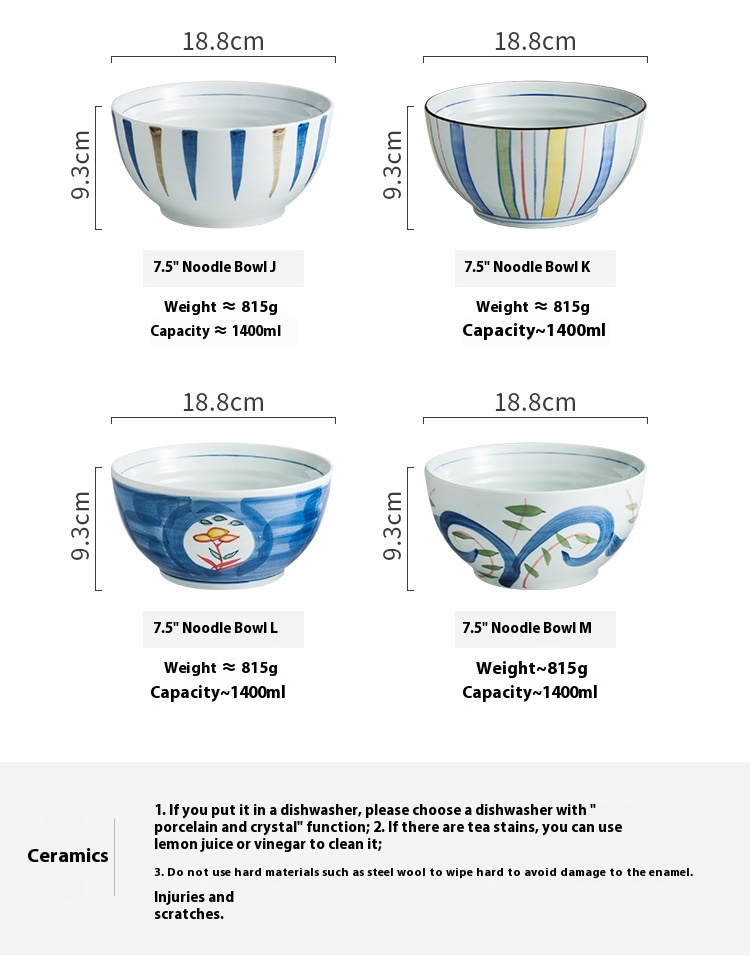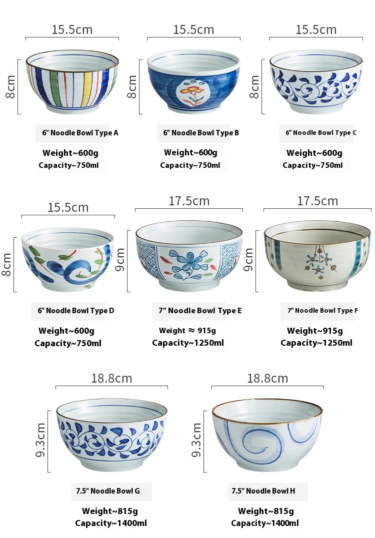 Color: 6 "noodle bowl C type, 6" noodle bowl B type, 6 "noodle bowl A type, 7" noodle bowl F type, 7 "noodle bowl E type, 6" noodle bowl D type, 7.5 "noodle bowl H model, 7.5" Noodle Bowl G model, 7.5 "noodle bowl K model, 7.5" noodle bowl J type, 7.5 "noodle bowl M model, 7.5" noodle bowl L model