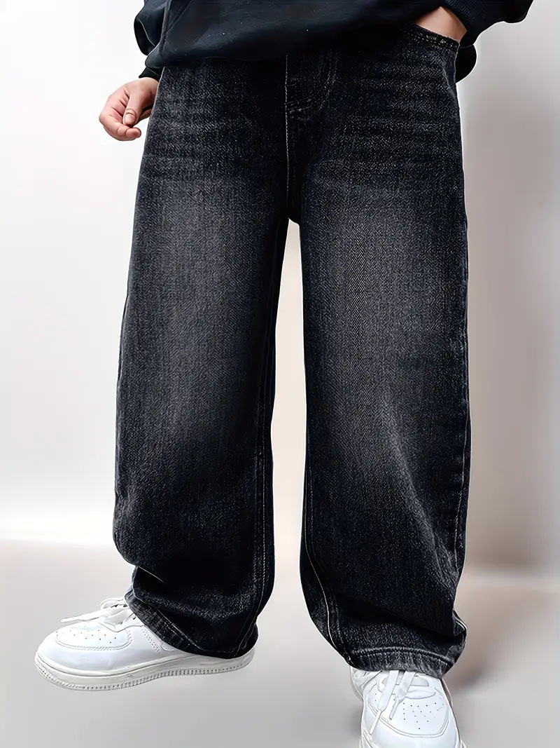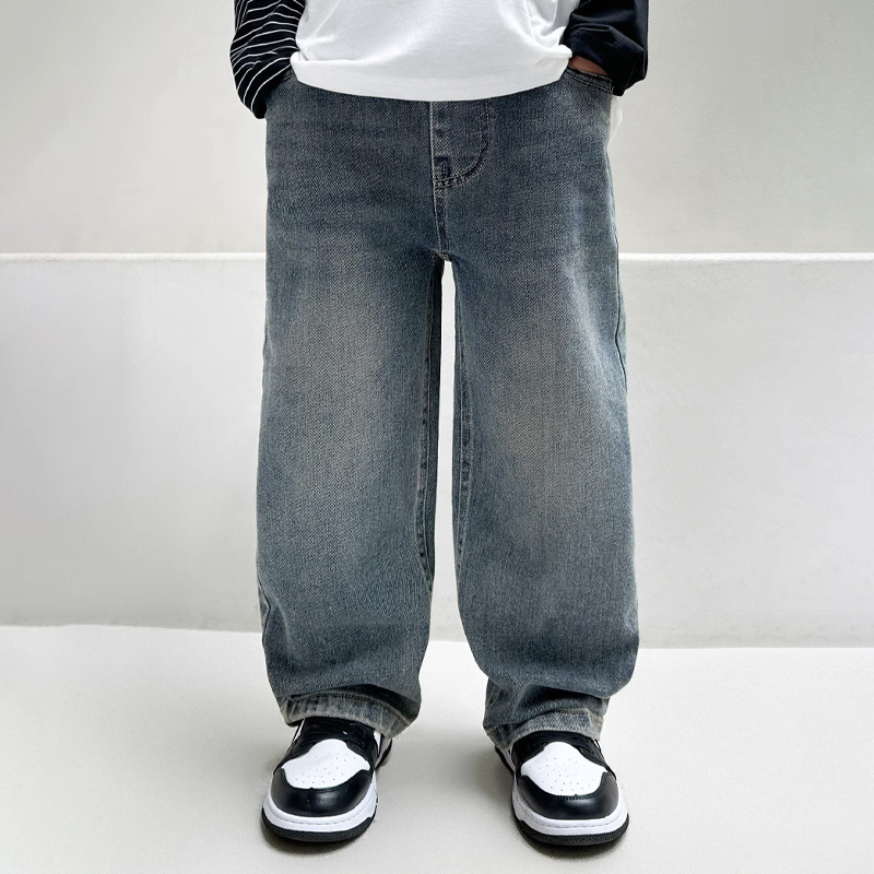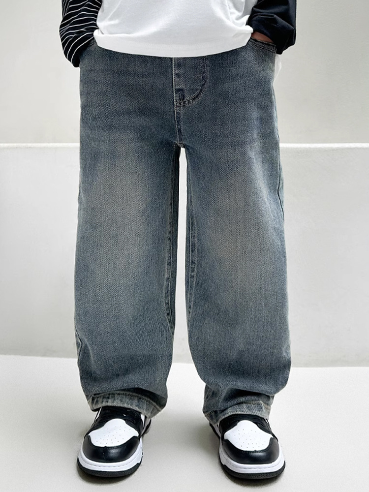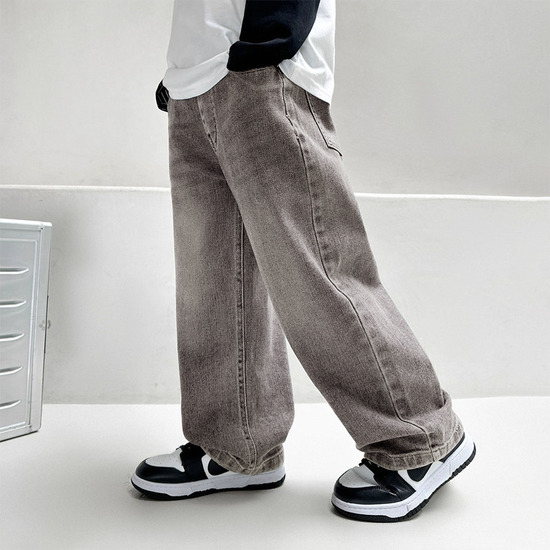 Retro Denim Pants Boys Wide-leg Straight-cut