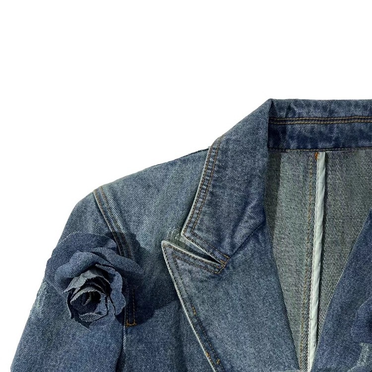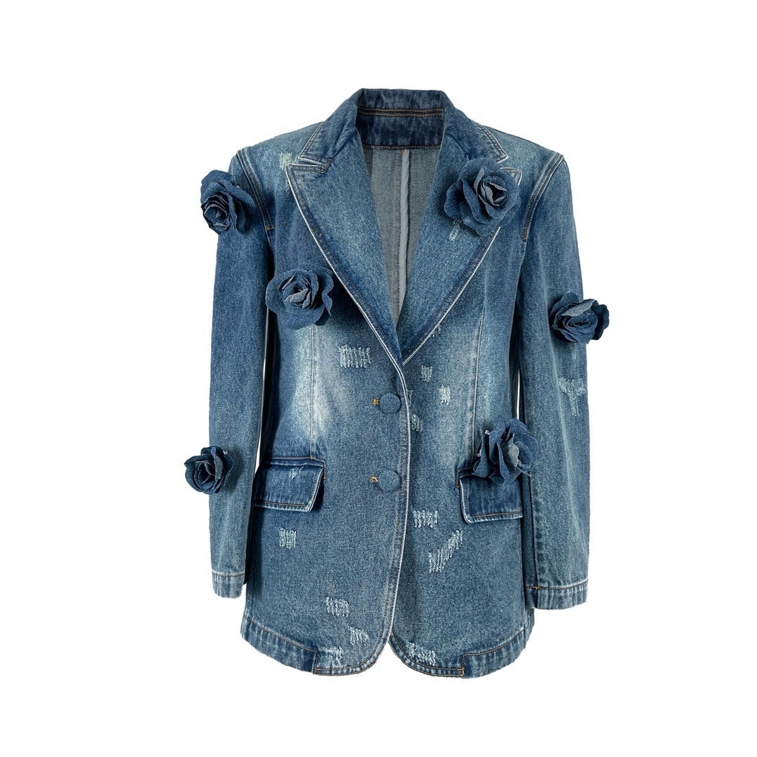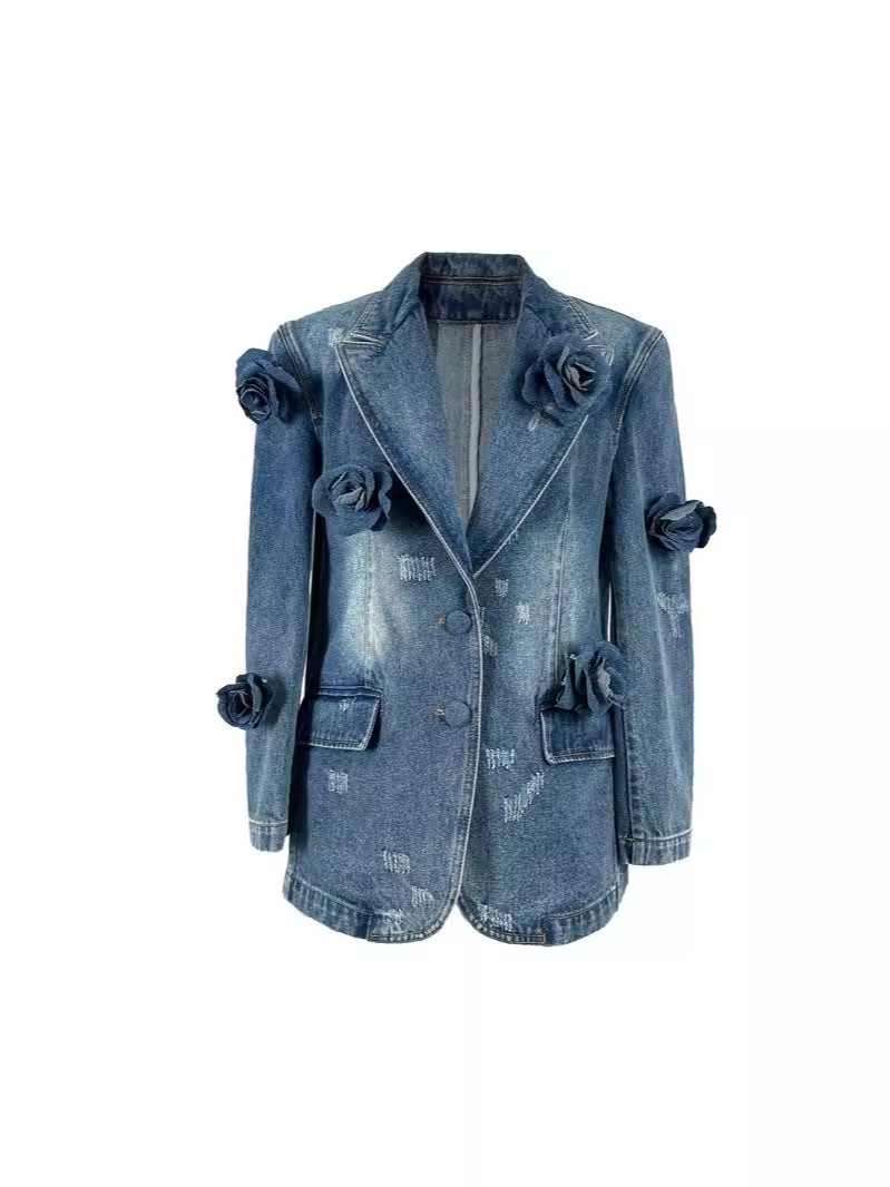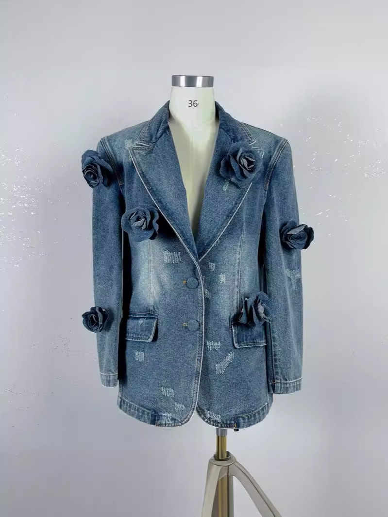 Retro Distressed 3D Rose Flower Ripped Do The Old Cowboy Coat