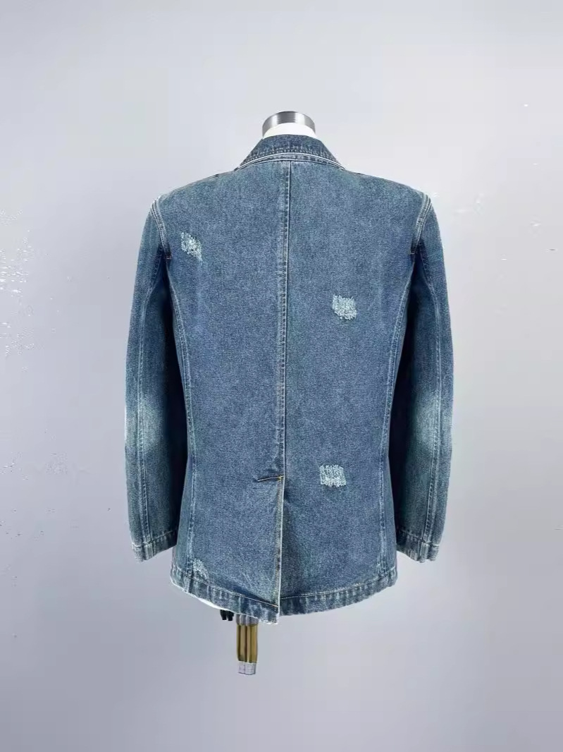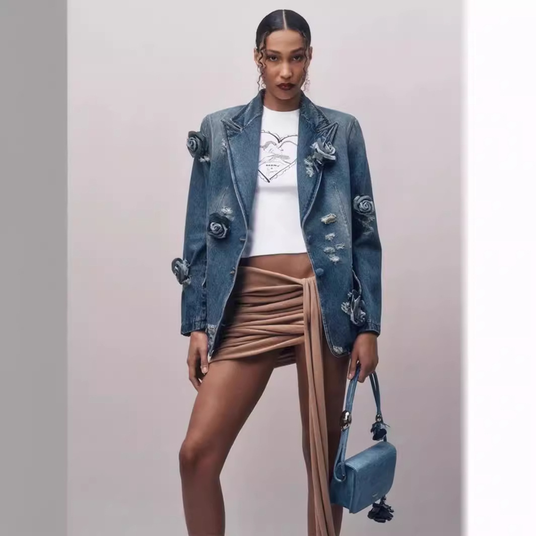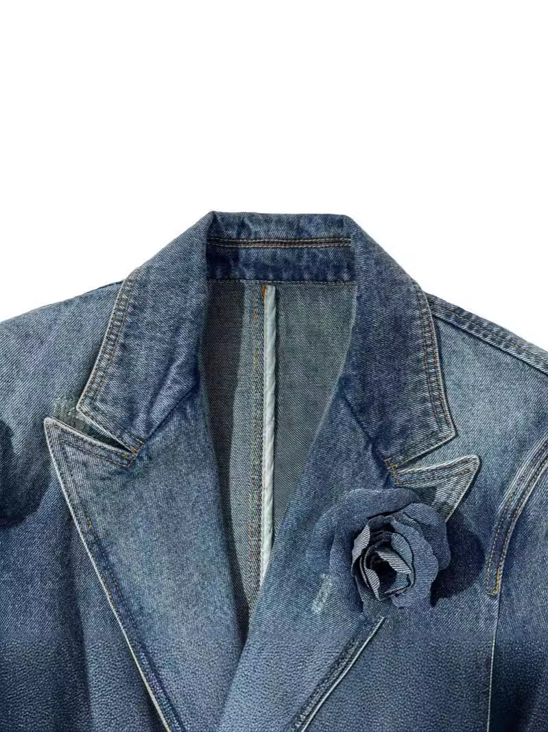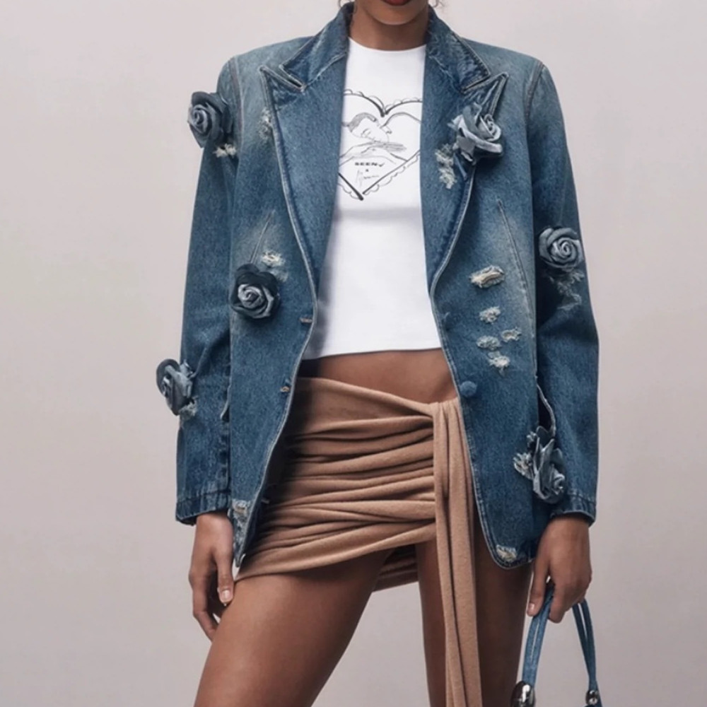 Retro Distressed 3D Rose Flower Ripped Do The Old Cowboy Coat