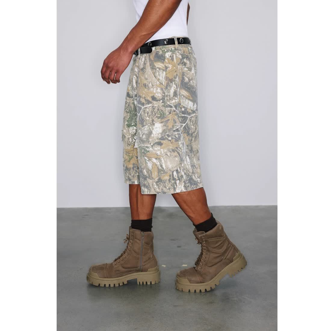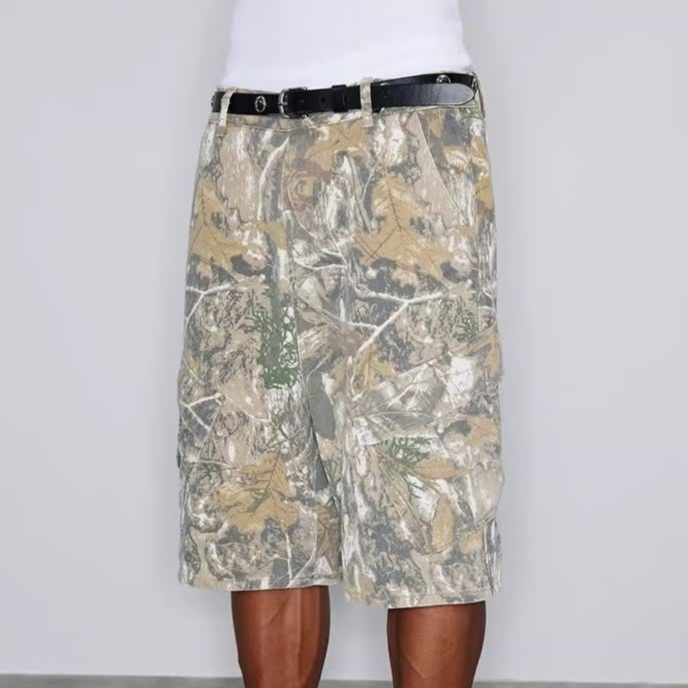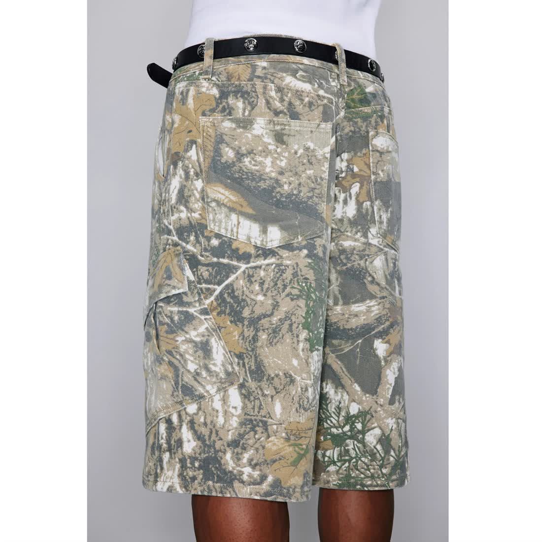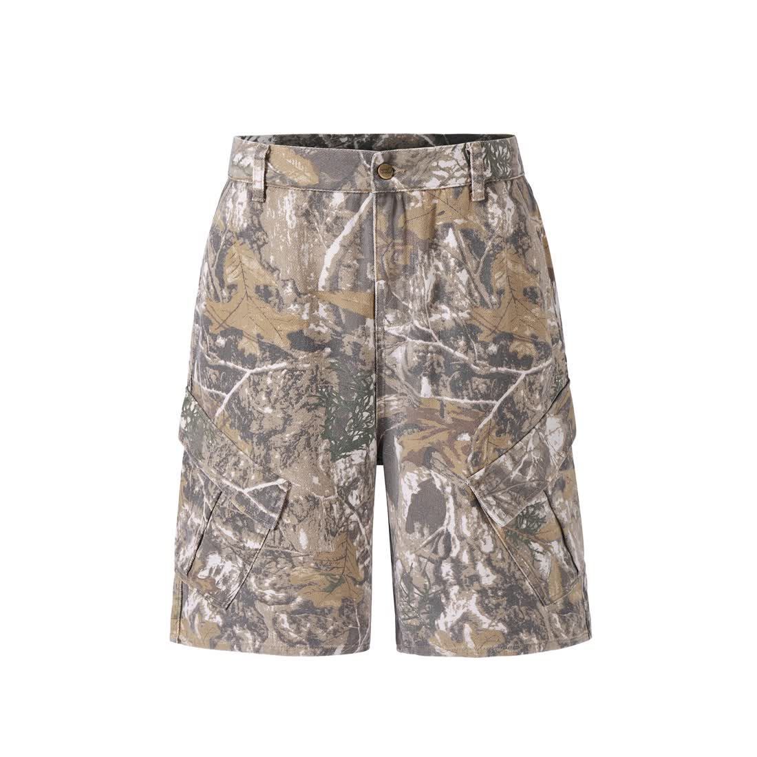 Retro Distressed Branch Camouflage Workwear Shorts