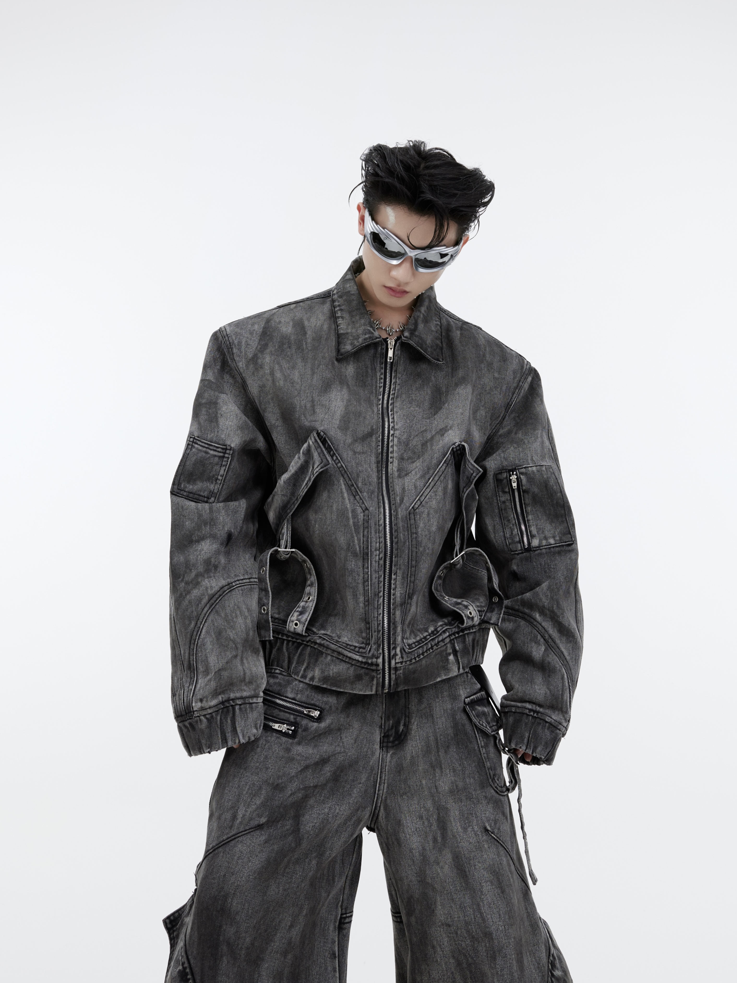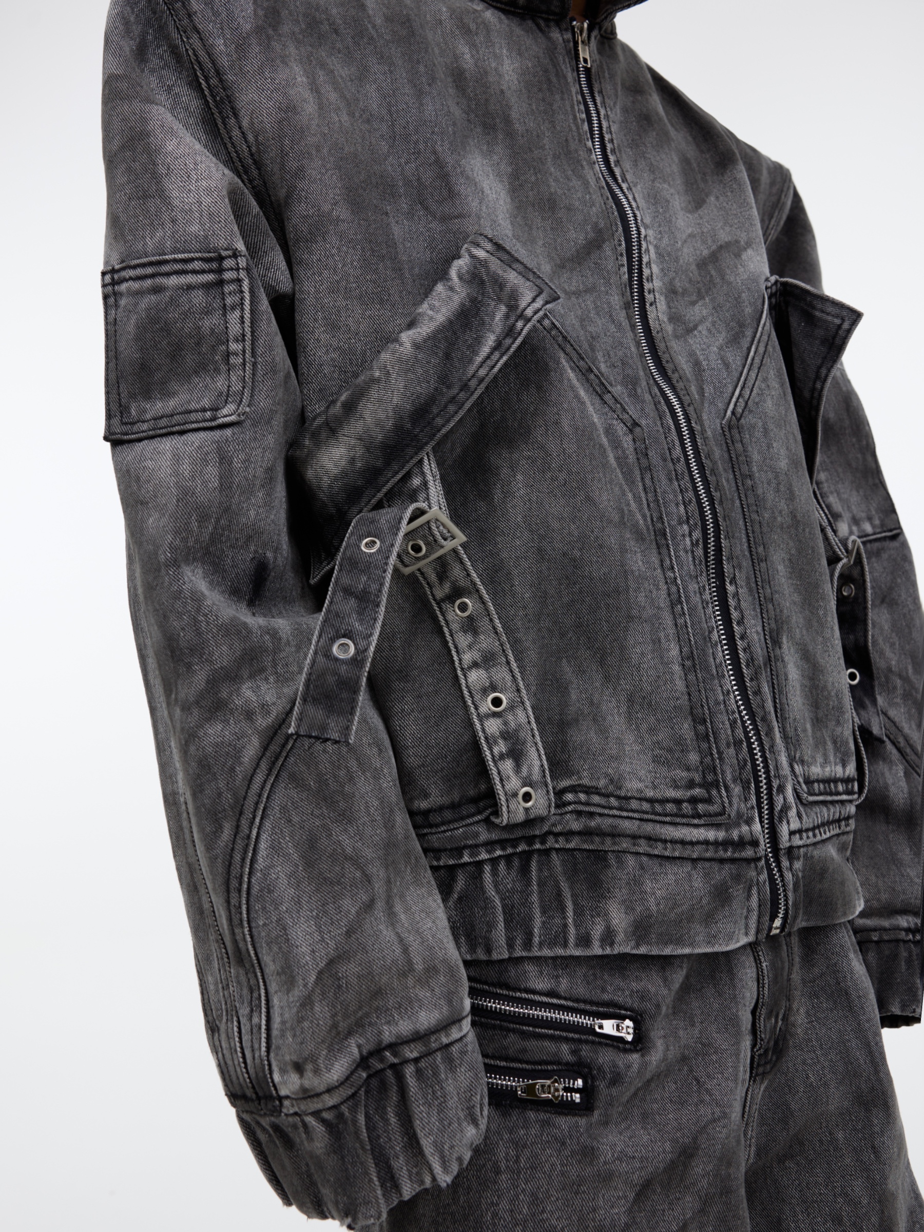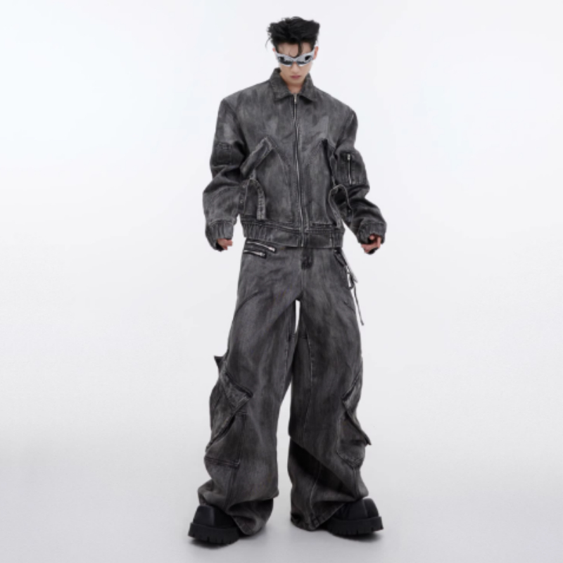 Color: gray top, gray trousers