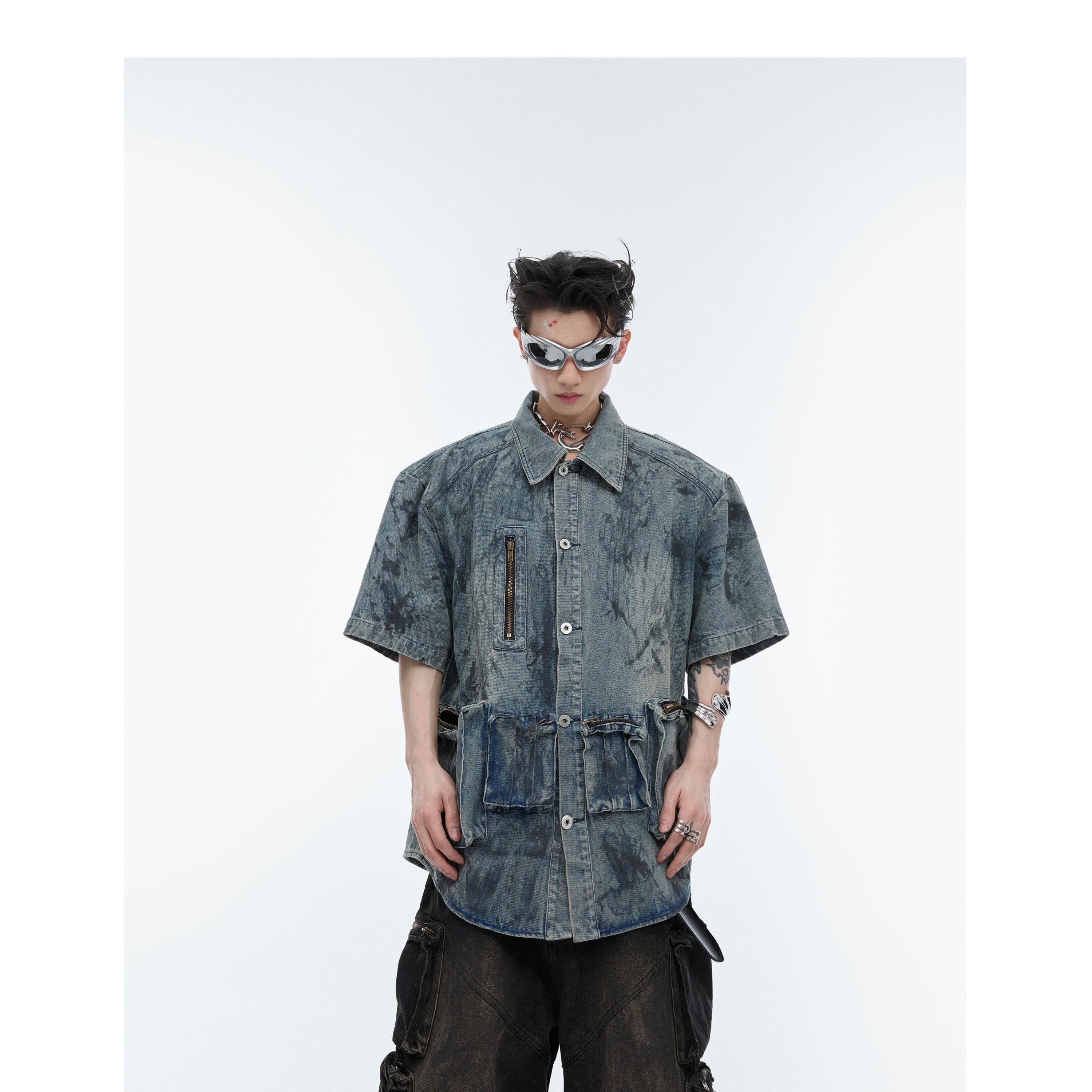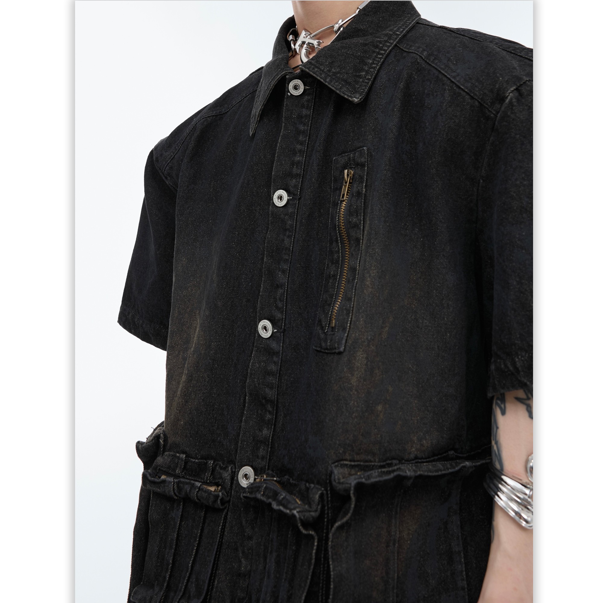 Retro Distressed Short Sleeve Denim Coat