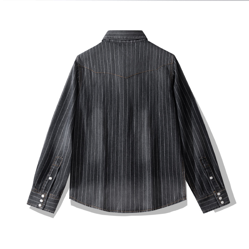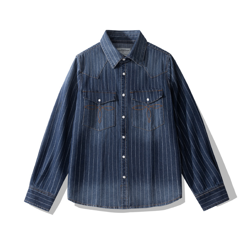 Retro Distressed Striped Denim Shirt