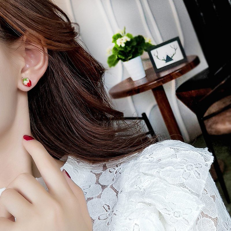 Retro Drop Glaze Strawberry Earrings