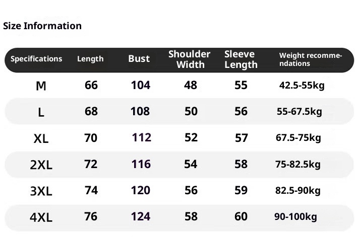 Size: M, L, XL, XXL, XXXL, XXXXL