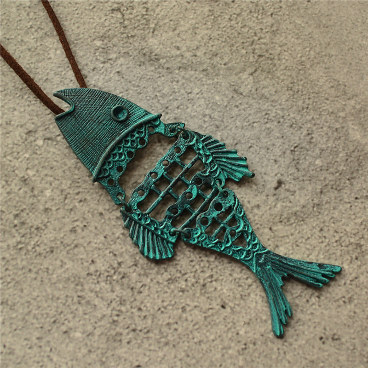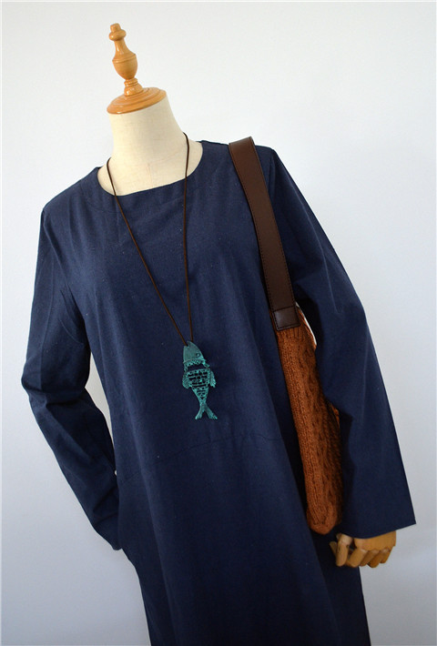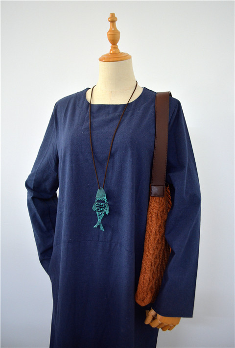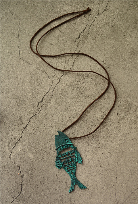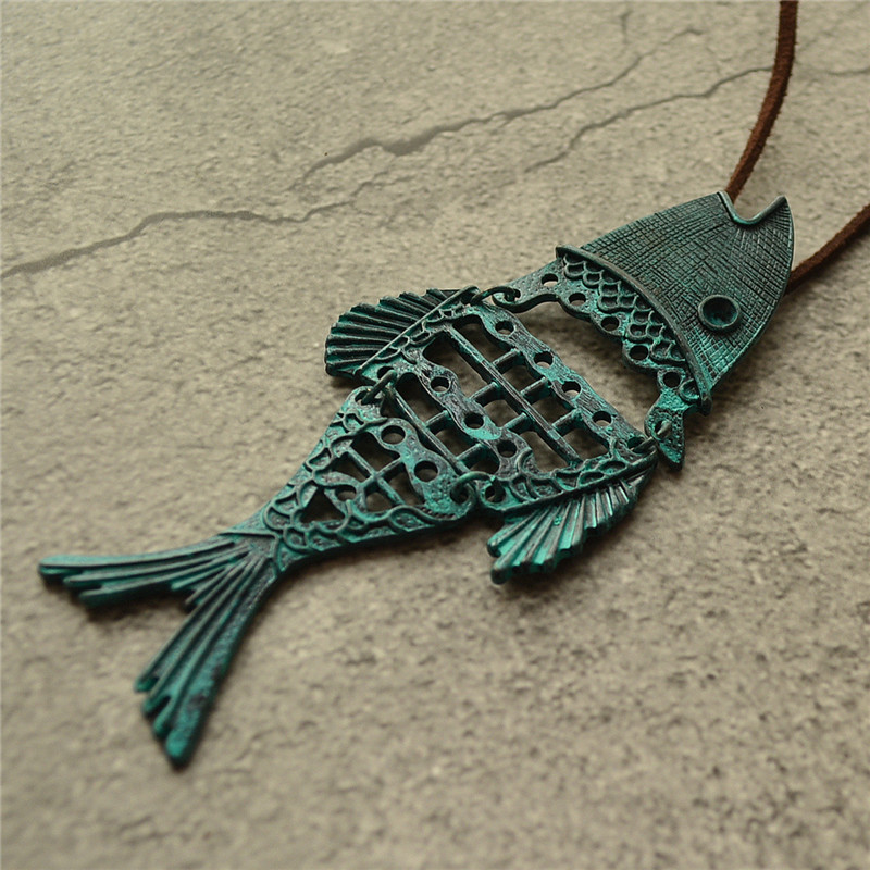 Retro Ethnic Style Cotton And Linen Female Assembling Jewelry Patina Hollow Fish Pendant Long Necklace Sweater Chain