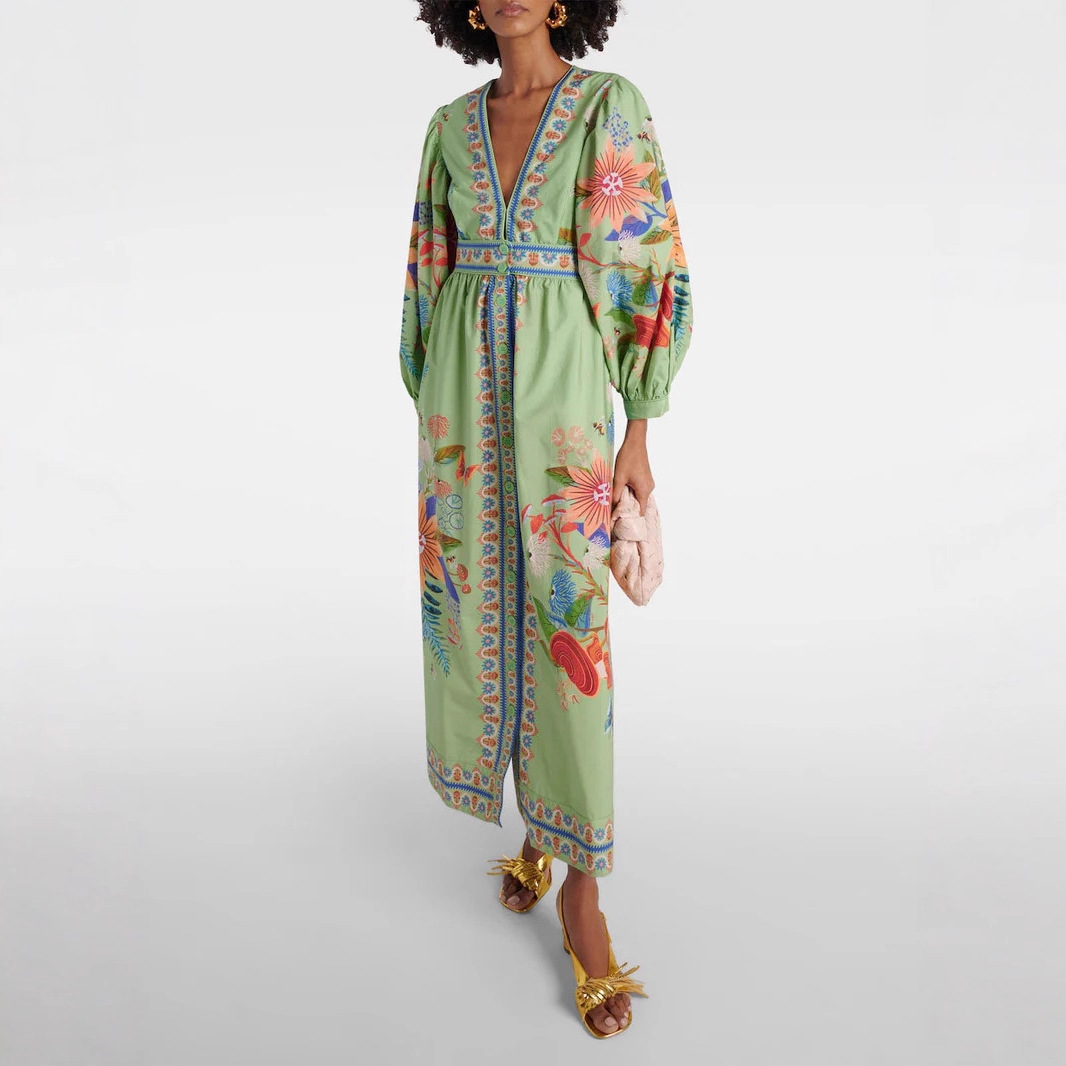 Pattern Printed Skirt Style A-line Color Green Waist Style High Waist Sizes S, M, L, XL, XXL Style Category JapaneseKorean Casual Skirt Length Long Trendy Element Print Design Cardigan-style Fabric Name Linen Blend