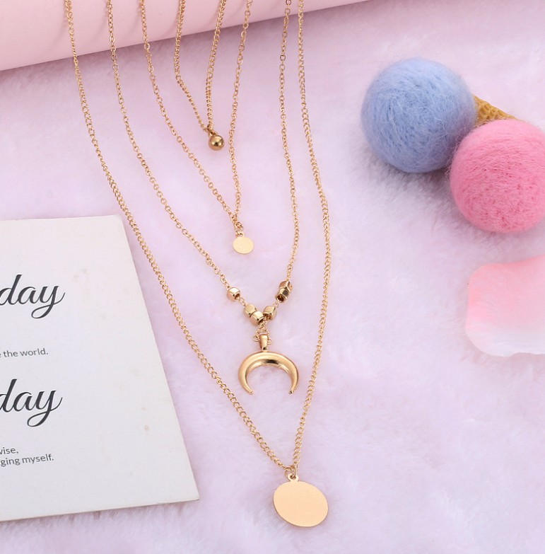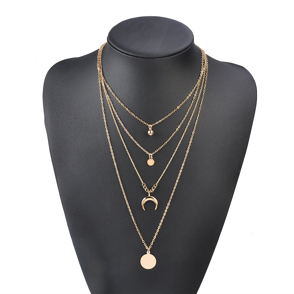 Name: Moon corner disc alloy multilayer necklace