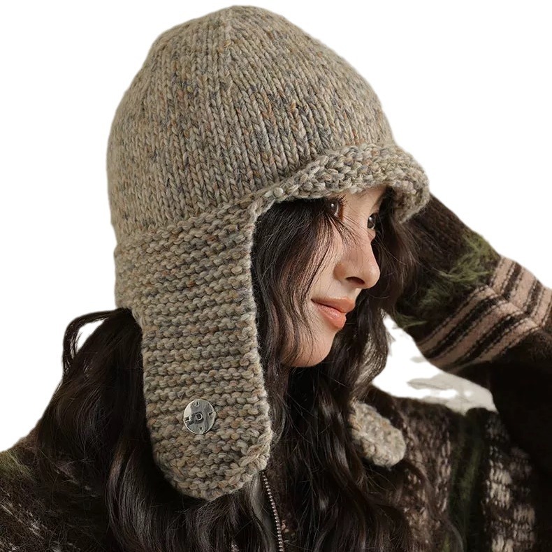 Retro Face-looking Small Mixed Color Woven Knitted Earmuffs Hat