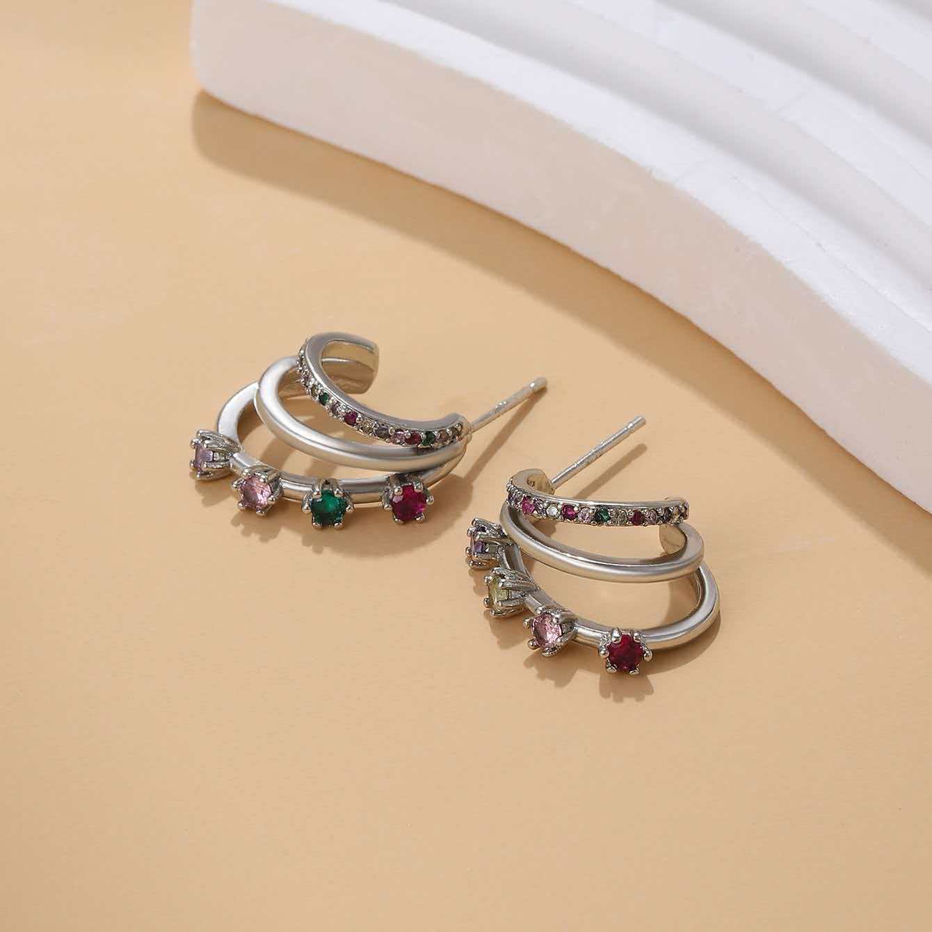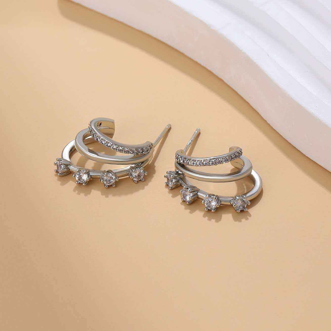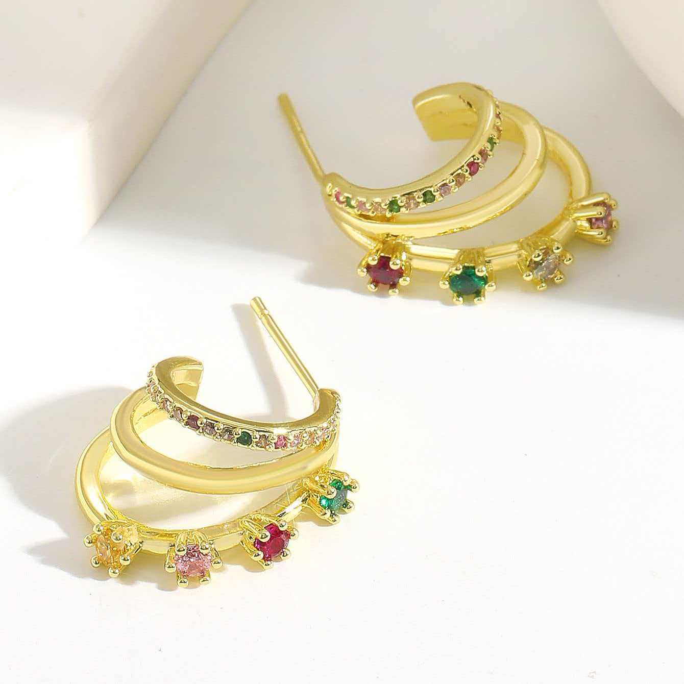 Retro Fashion-forward Niche-design Metal Multi-layer C-shaped Stud Earrings