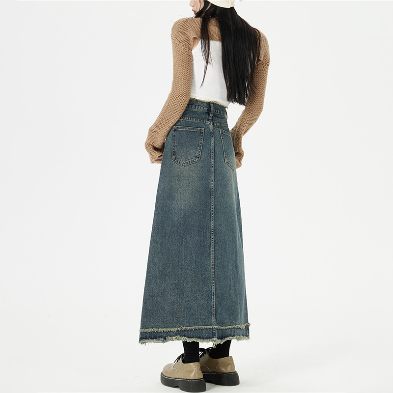 Retro Fashion Hip Denim Long Skirts Women